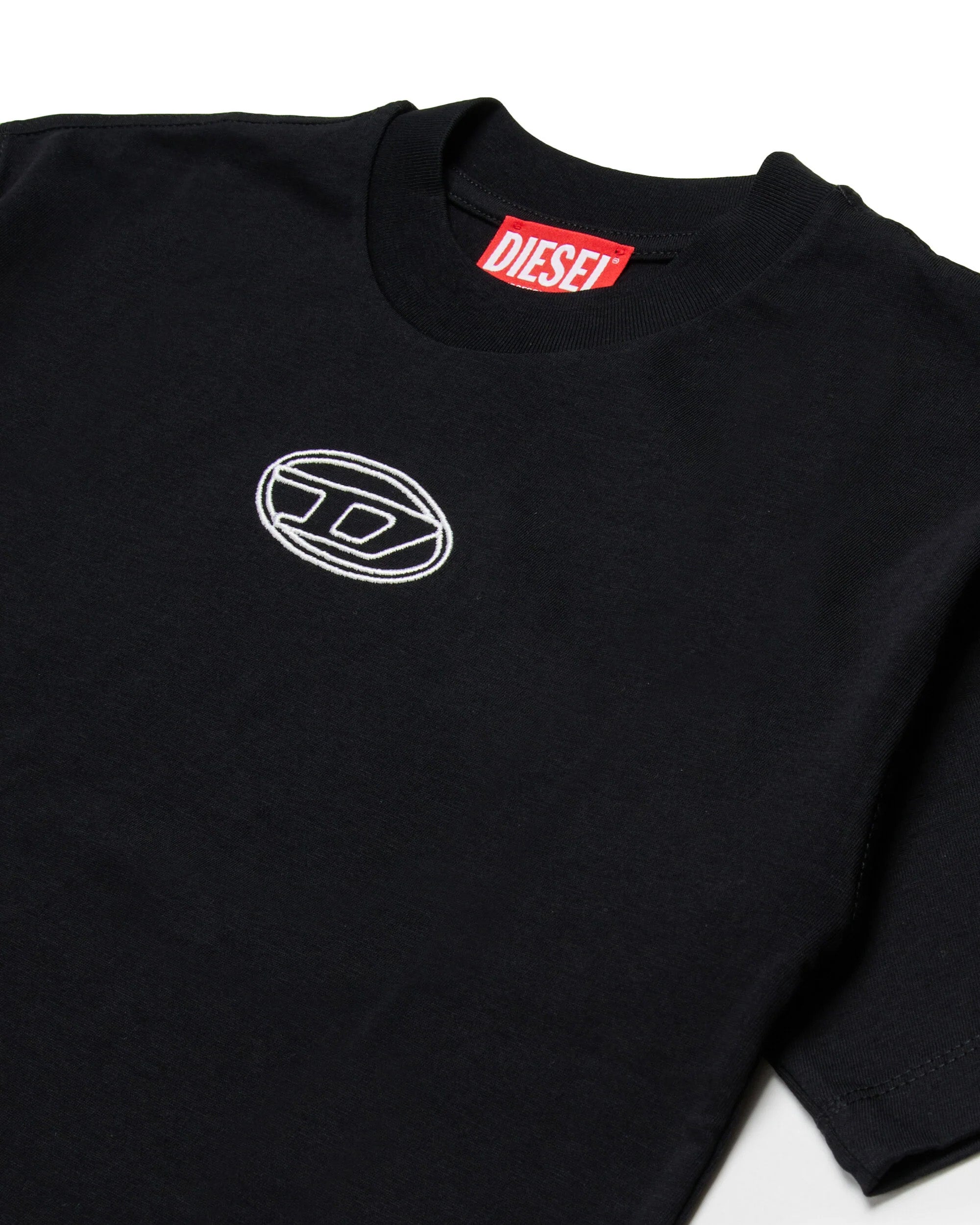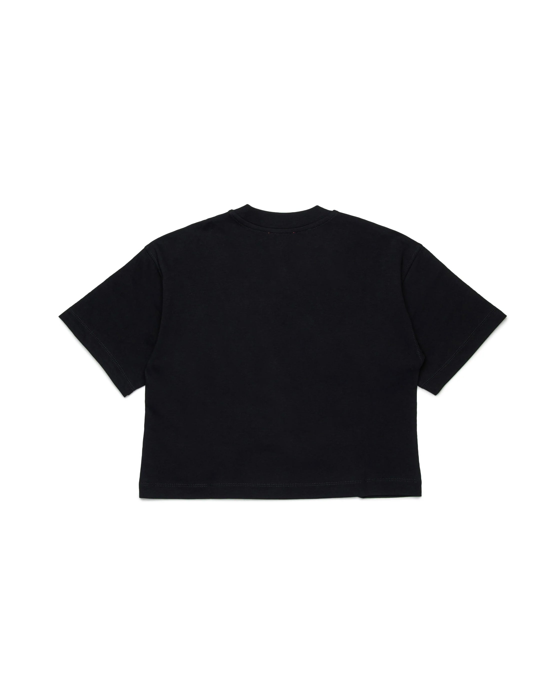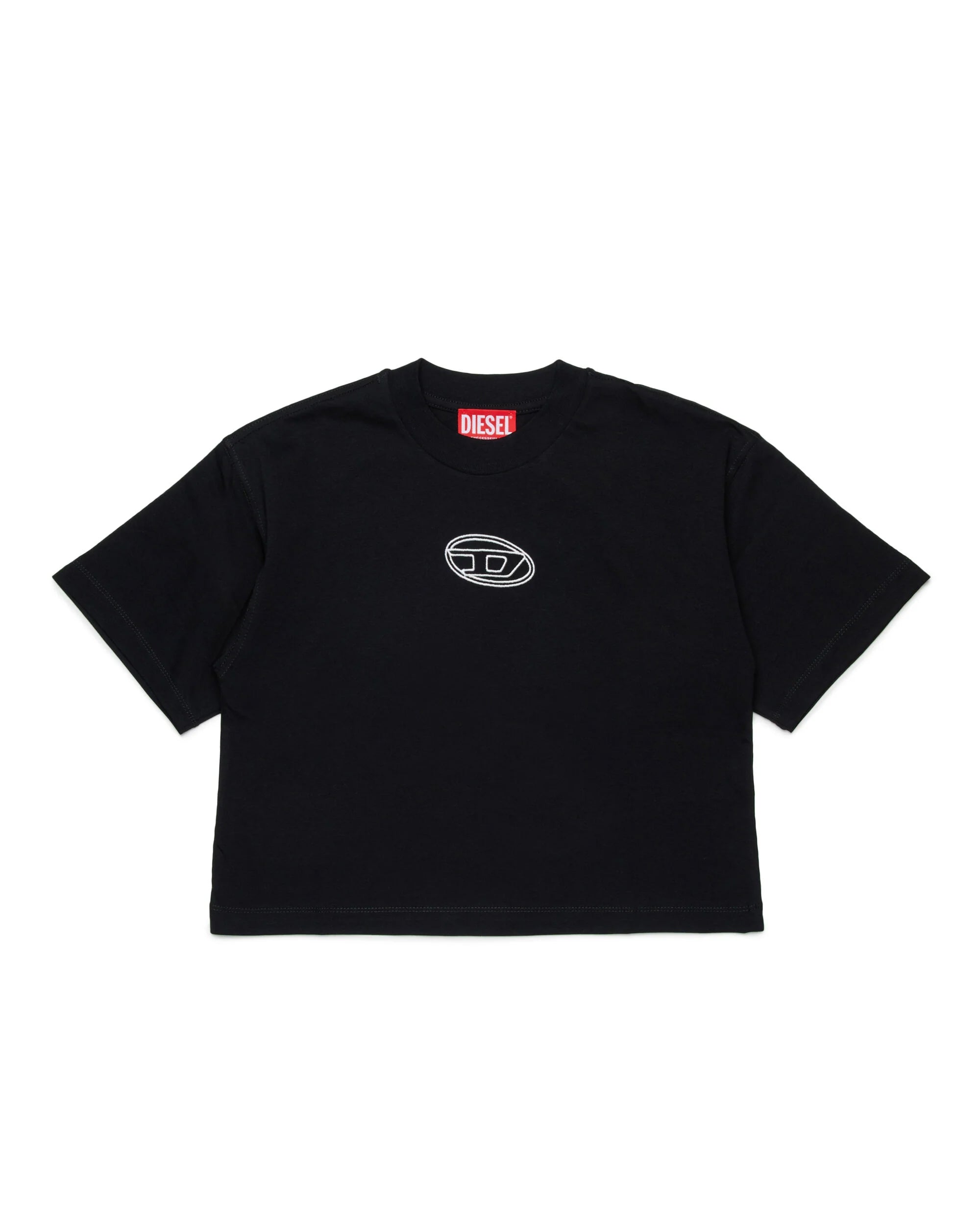 Diesel Kids T-shirt Cropped Nera con Logo Oval D per Bambine