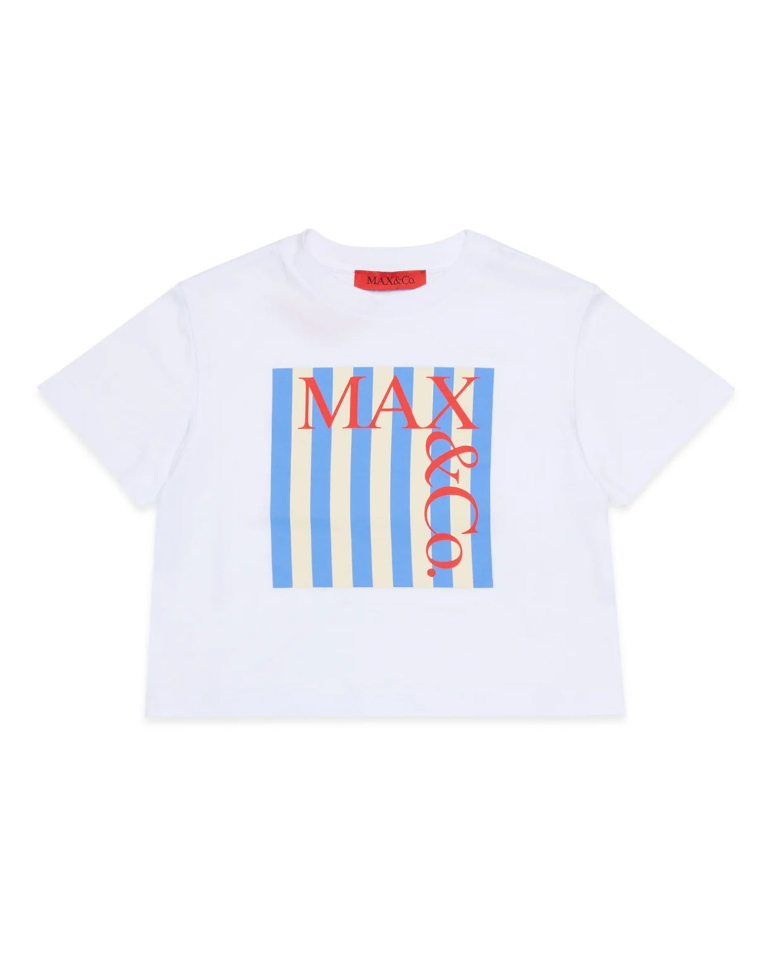 Max & Co T-Shirt Bianco Crop con Stampa Logo per Bambine