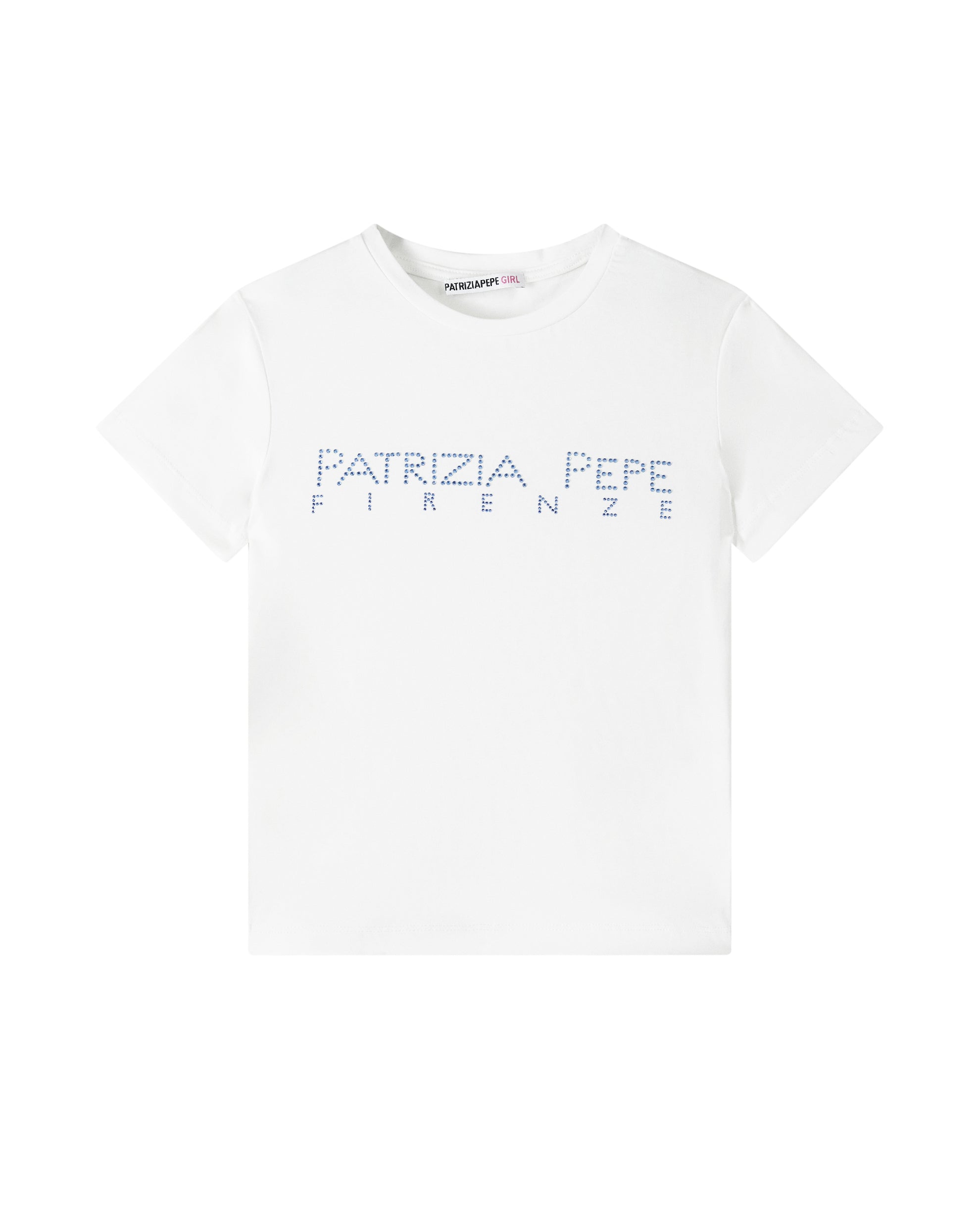Patrizia Pepe Kids T-Shirt Bianca con Strass Azzurro per Bambine - Florence Kids