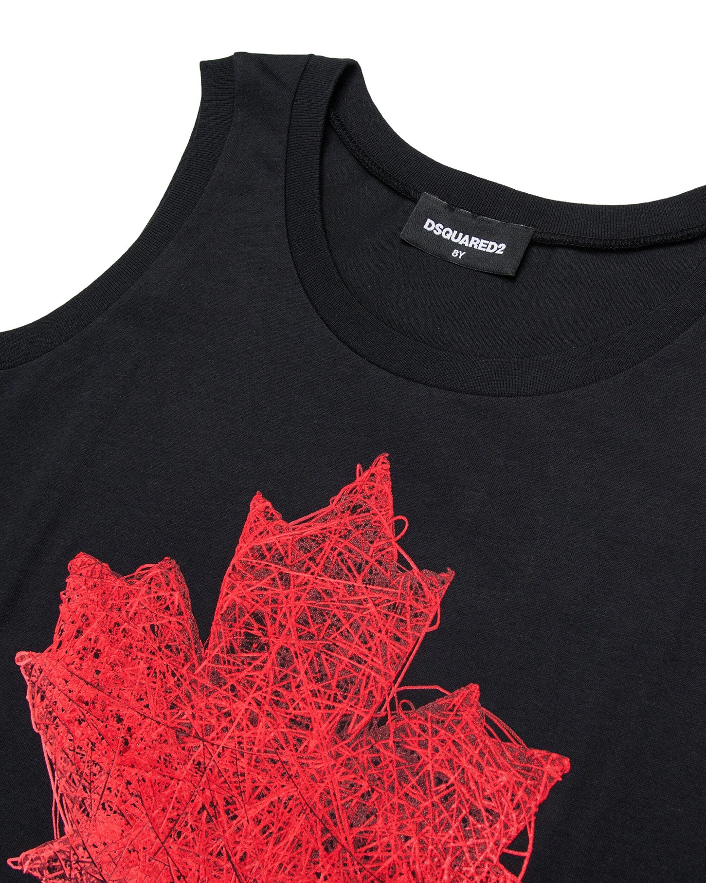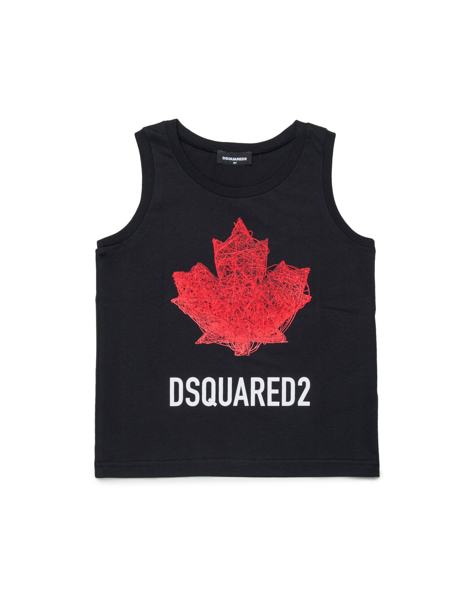 Dsquared2 Kids Canotta Nera con Stampa Logo Foglia D'acero Unisex per Bambini