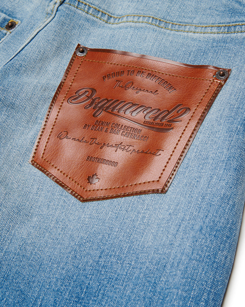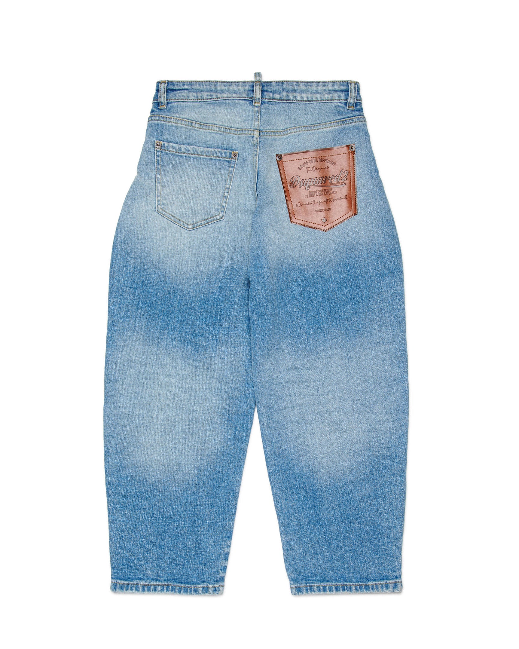 Dsquared2 Kids Jeans Denim Blu Stone Wash con Tasca Retro Effetto Pell - Florence Kids