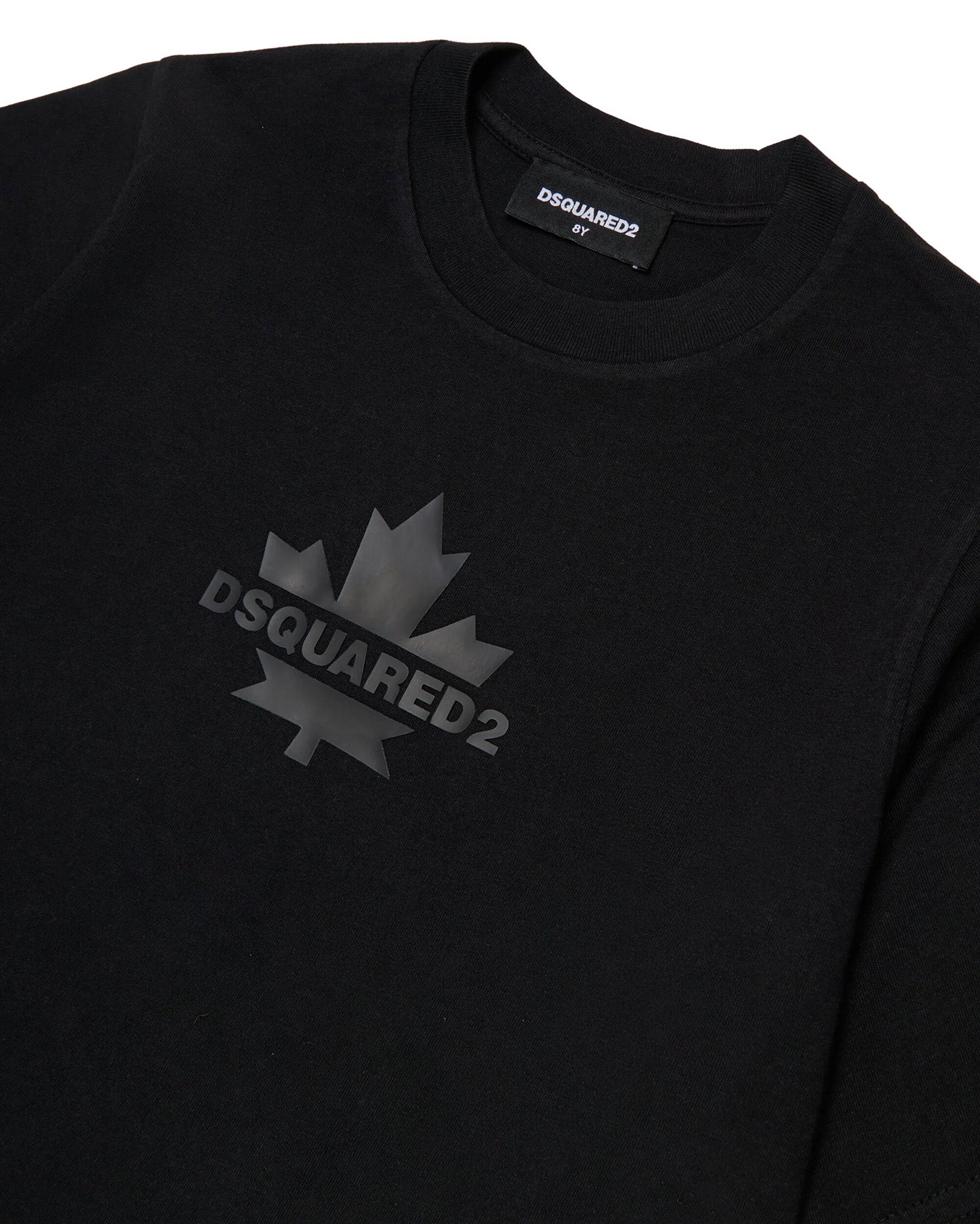 Dsquared2 Kids T-shirt Nera con Stampa Logo Foglio d'acero per Bambini - Florence Kids