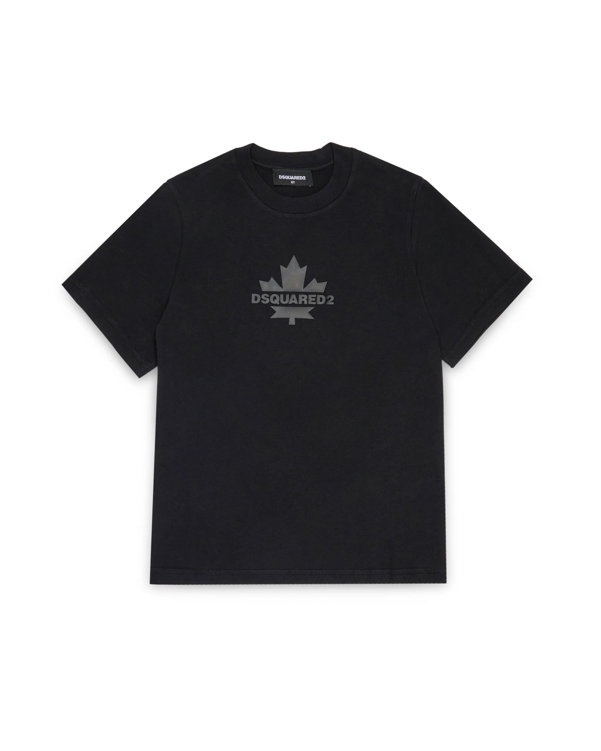 Dsquared2 Kids T-shirt Nera con Stampa Logo Foglio d'acero per Bambini