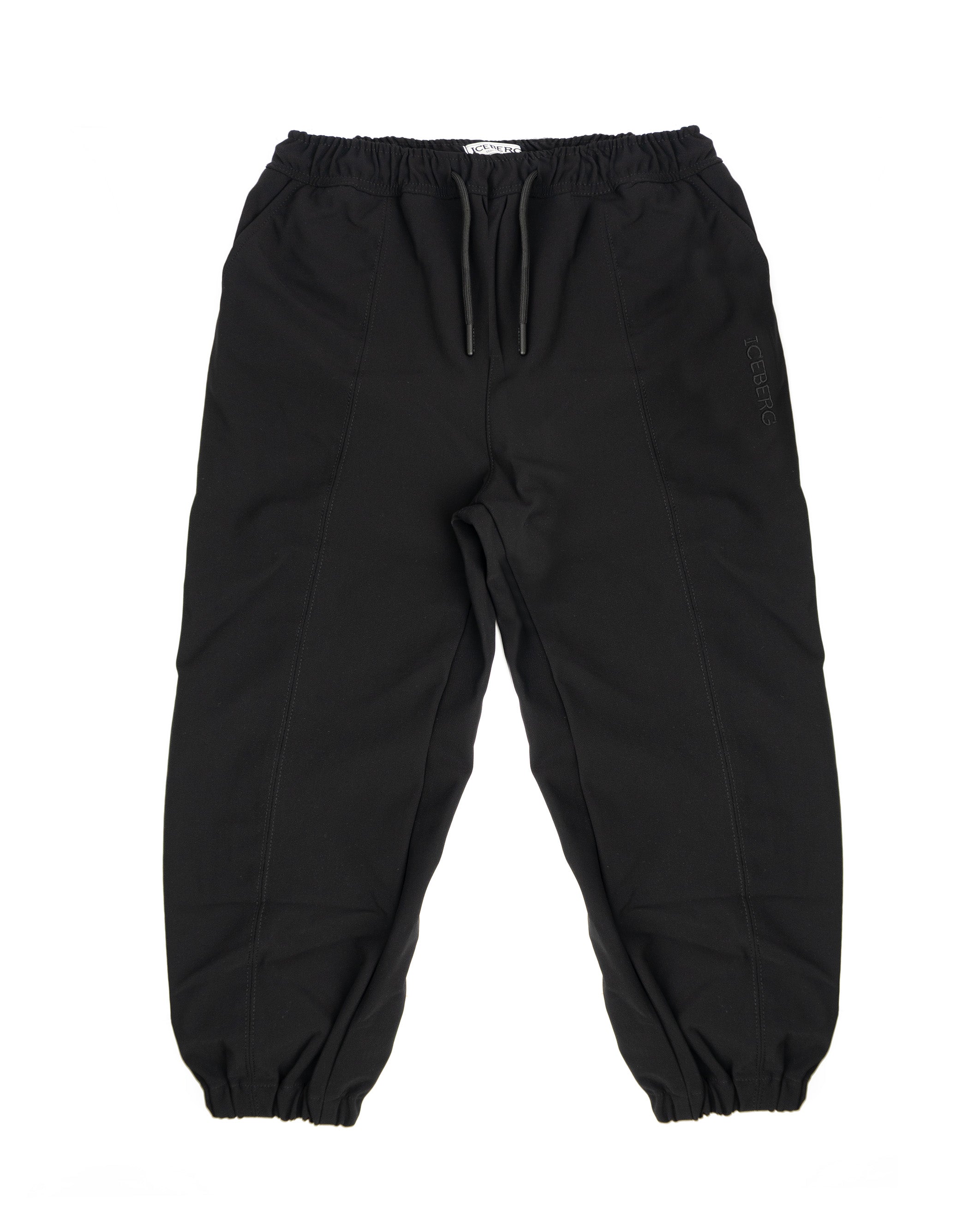 Iceberg Kids Pantalone di Tuta Nero con Ricamo Logo Tono su Tono per Bambini