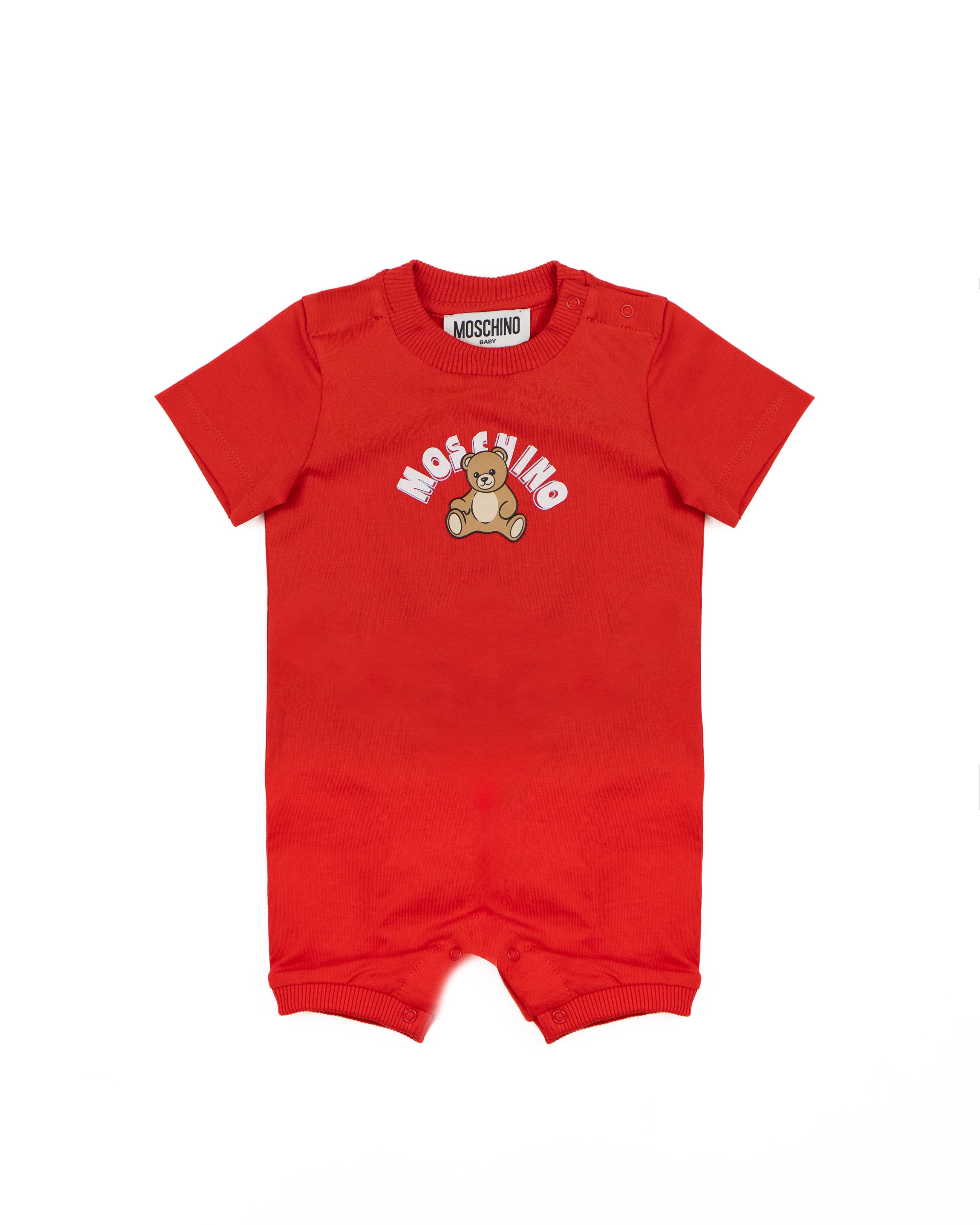 Moschino Kids Pagliaccetto Rosso con Bottoni Apetura Spalla e Stampa L - Florence Kids