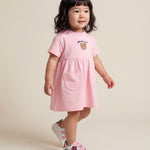 La linea presenta maniche corte con leggera arricciatura e balza sul fondo che dona movimento e volume alla silhouette. I bottoni automatici sulla spalla facilitano la vestizione, mentre il taglio morbido garantisce comfort durante tutta la giornata. Un abito pratico ma altamente riconoscibile, perfetto per occasioni quotidiane o momenti speciali.