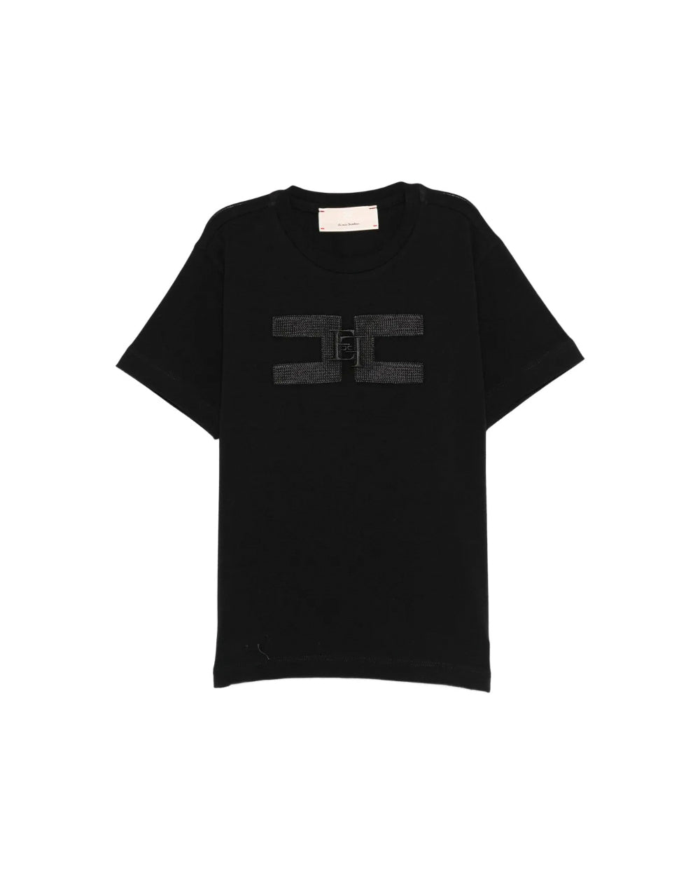 Elisabetta Franchi La Mia Bambina T-t-shirt Nera con Ricamo Logo per Bambine