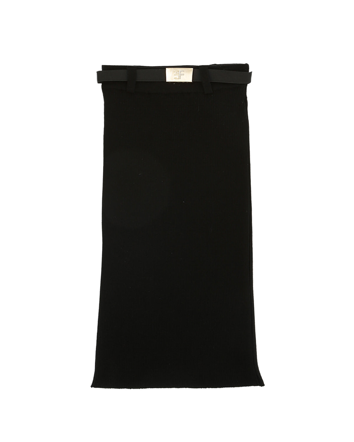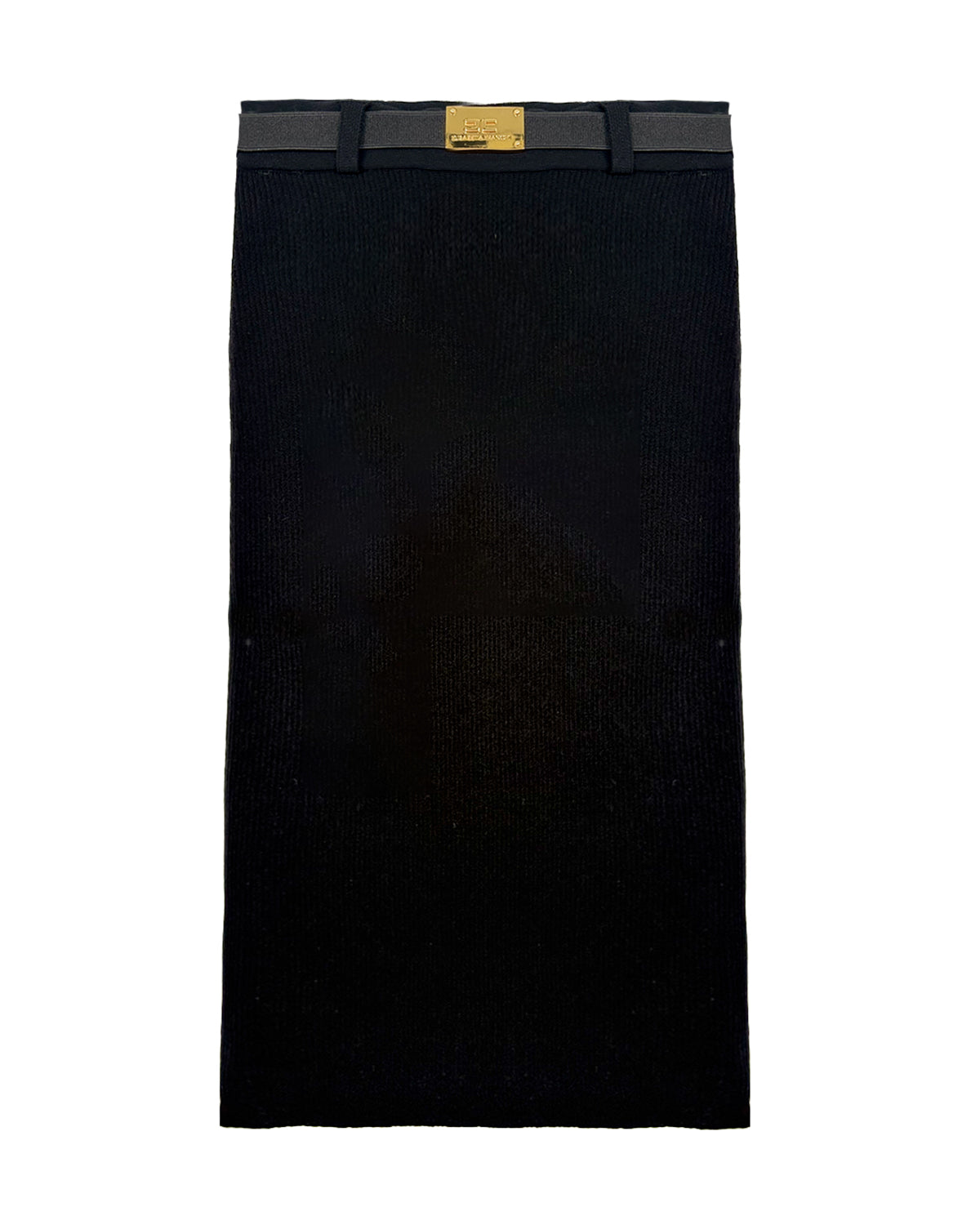 Scopri l’Elisabetta Franchi gonna nera in maglia a coste con placca logo, un must-have intramontabile che unisce eleganza e funzionalità.