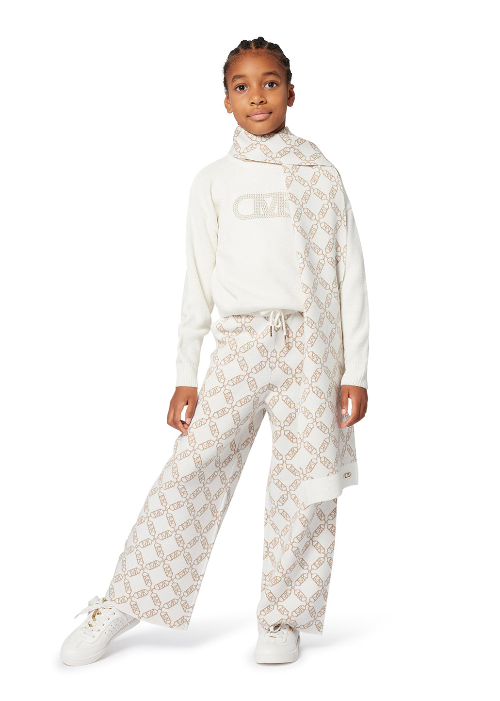 Il pantalone sportivo Michael Kors Kids sono realizzati in un elegante tono bianco crema e caratterizzati da una stampa monogram MK all-over, perfetta per un look distintivo. Presentano una vita elasticizzata per garantire comfort e flessibilità, oltre a tasche laterali pratiche e di design. Ideali per le bambine attente alla moda, questi jogger sono un mix di stile sportivo e raffinatezza, perfetti per la collezione Autunno/Inverno 2025.