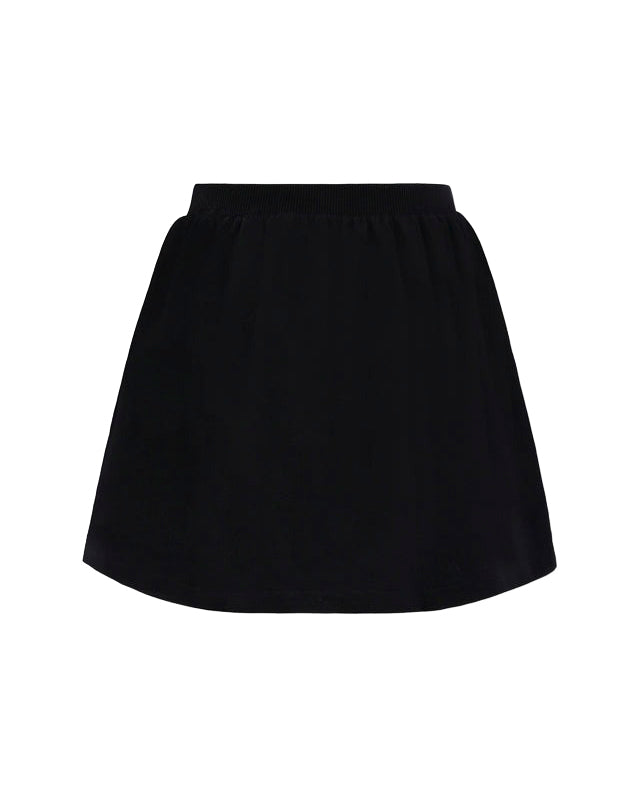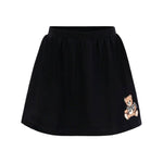 Stile e comfort con la gonna nera Moschino Kids: stampa Teddy all-over, vita elasticizzata e fodera per un look irresistibile.
