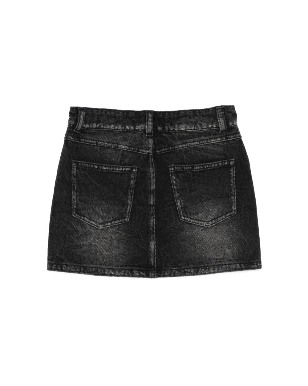 La gonna in denim nera Moschino Kids per bambine unisce un design versatile e raffinato perfetto per la Stagione Autunno/Inverno 2025. Realizzata in denim di alta qualità, questo modello in stile cinque tasche è curato nei minimi dettagli: