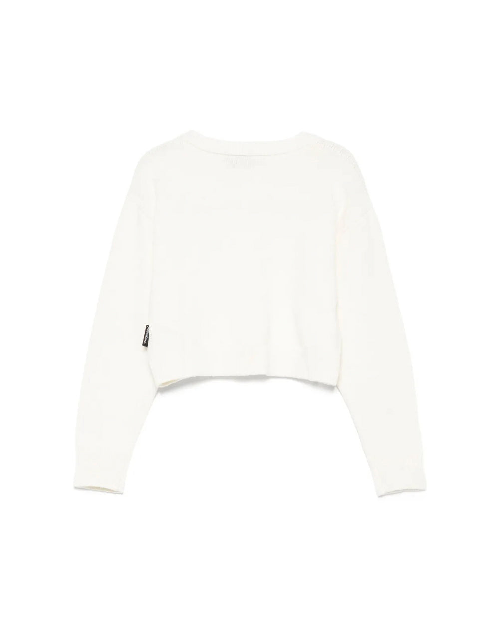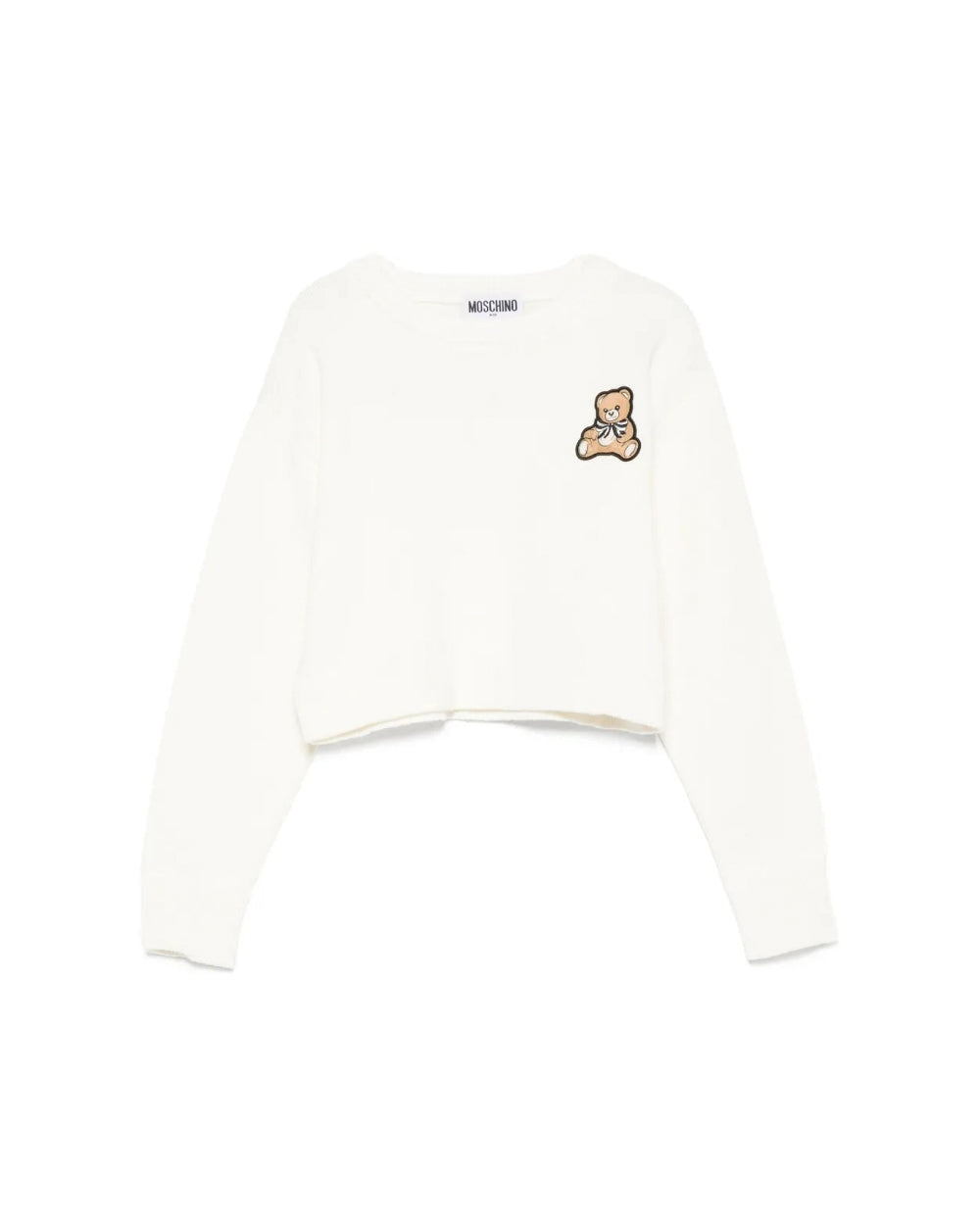Moschino Kids Maglia Girocollo Crop Panna per Bambine