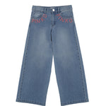 Pinko Kids Jeans Denim Blu con Logo Strass Rosa per Bambine