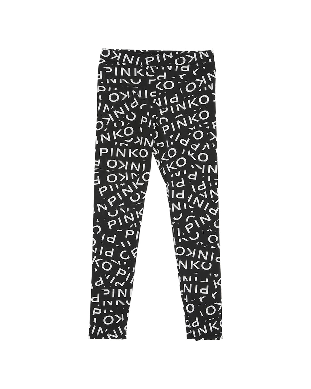 Pinko Kids Leggings Nero con Logo All Over per Bambine