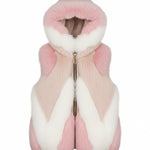 Yes London Gilet Ecovisone Tricolore Bianco/beige/Rosa con Cappuccio per Bambine