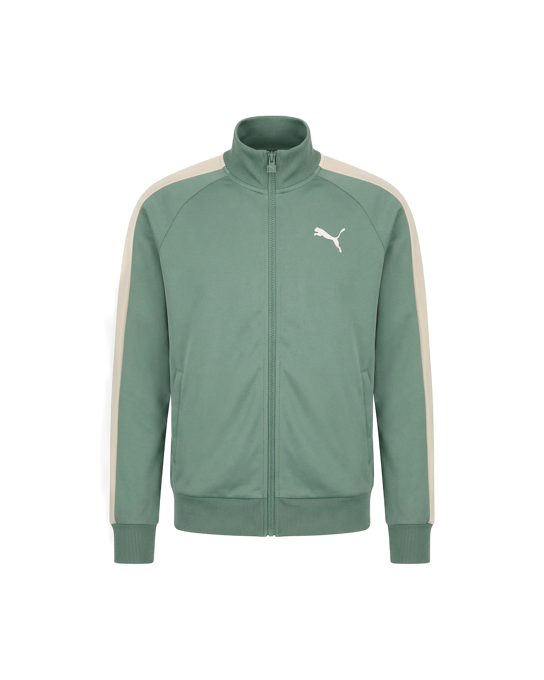 Puma Kids Felpa Verde con Fascie Beige a Contrasto Unisex per Bambini