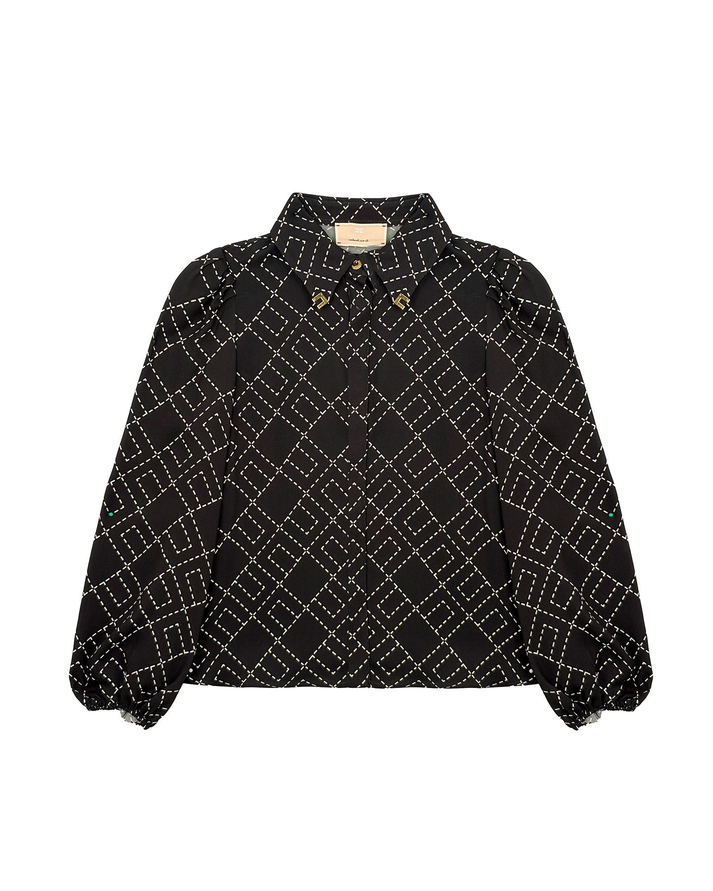 Scopri l’Elisabetta Franchi La Mia Bambina camicia nera con logo geometrico per bambine, un must-have chic e moderno firmato dal celebre brand.