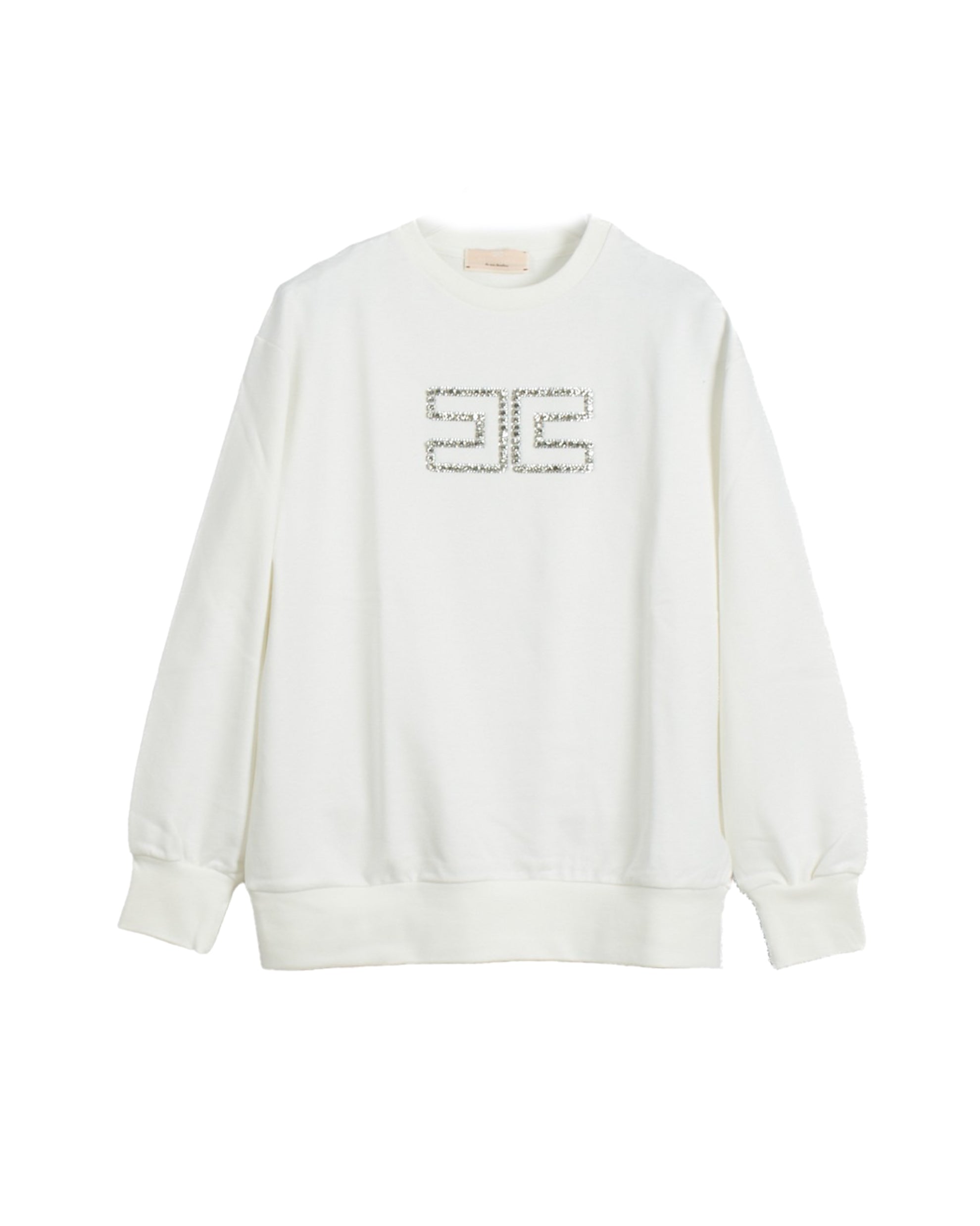 Elisabetta Franchi La Mia Bambina Felpa Panna Girocollo con Logo per Bambine