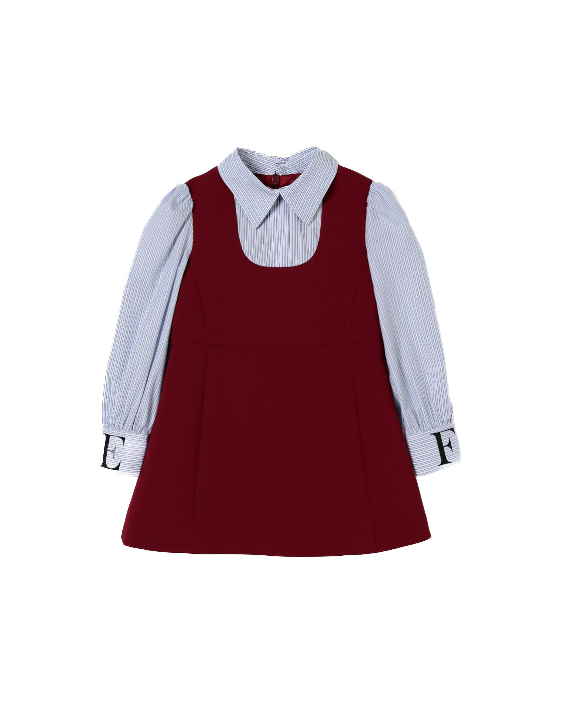 Elisabetta Franchi La Mia Bambina Salopette Cherry con Camicia a Righe per Neonate