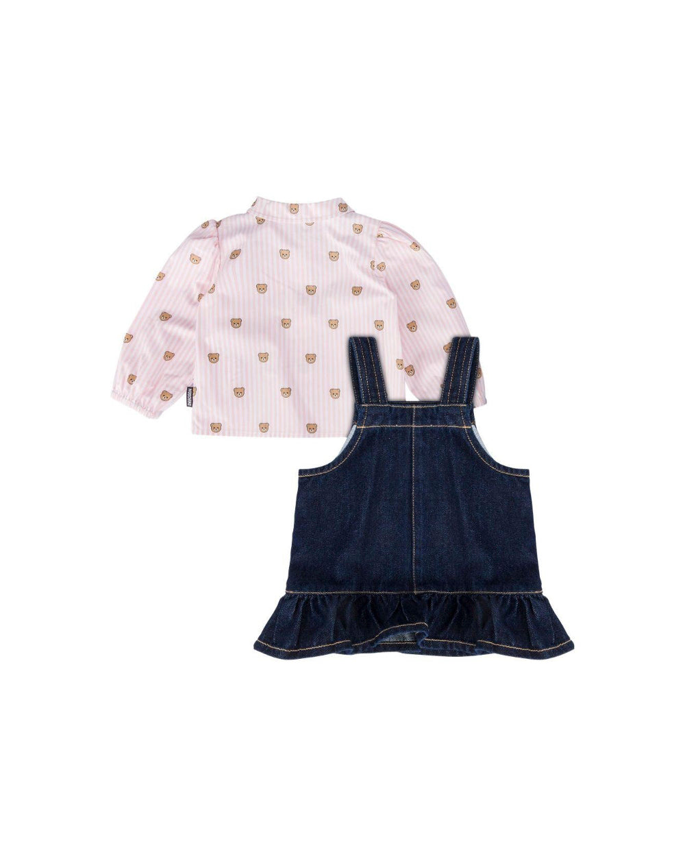 Moschino Kids Camicia a Righe Rosa con Salopette per Neonate
