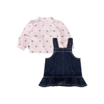 Il set Moschino Kids per neonate è un outfit perfetto per vestire con stile durante l’autunno e l’inverno. Comprende una camicia a righe rosa e blu con chiusura a bottoni sul collo, delicati ruches e una graziosa stampa con orsetto. L’abito salopette coordinato presenta tasche frontali funzionali ed è rifinito con gli stessi toni dolci e femminili. Un mix irresistibile che unisce estetica giocosa, dettaglio couture e comodità in un capo facile da indossare.