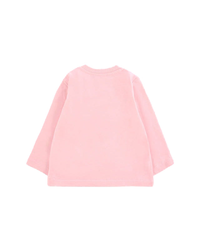 La t-shirt rosa Moschino Kids per neonate, realizzata in cotone biologico morbido, è pensata per garantire comfort ed eleganza fin dai primi mesi. Il design presenta un girocollo a costine e maniche lunghe, mentre la chiusura con bottoni automatici sulla spalla agevola il cambio in modo pratico e sicuro.
