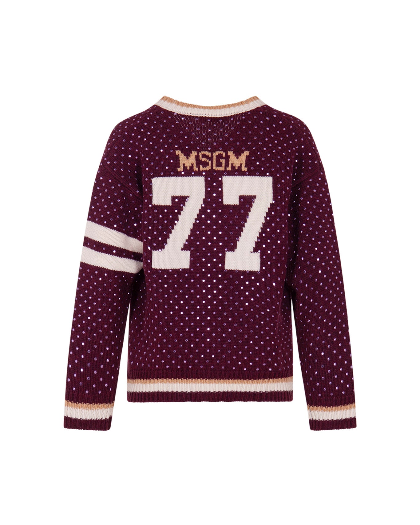 MSGM Kids Cardigan Borgogna con Strass per Bambine