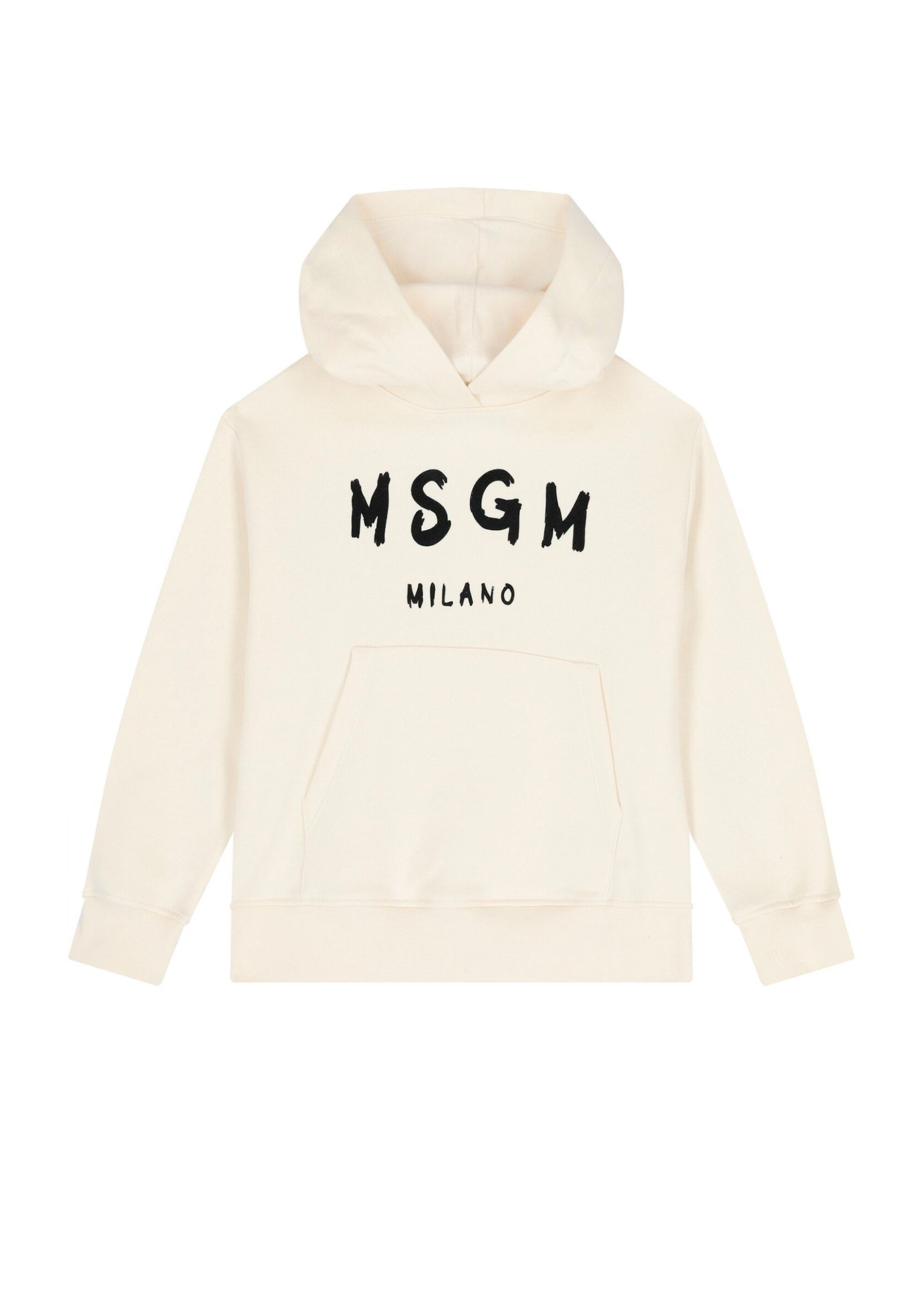 MSGM Kids Felpa con Cappuccio Crema con Logo per Bambini