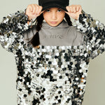 Pinko Kids Abito con Cappuccio e MAxi Paillettes Argento per Bambine