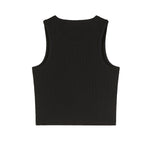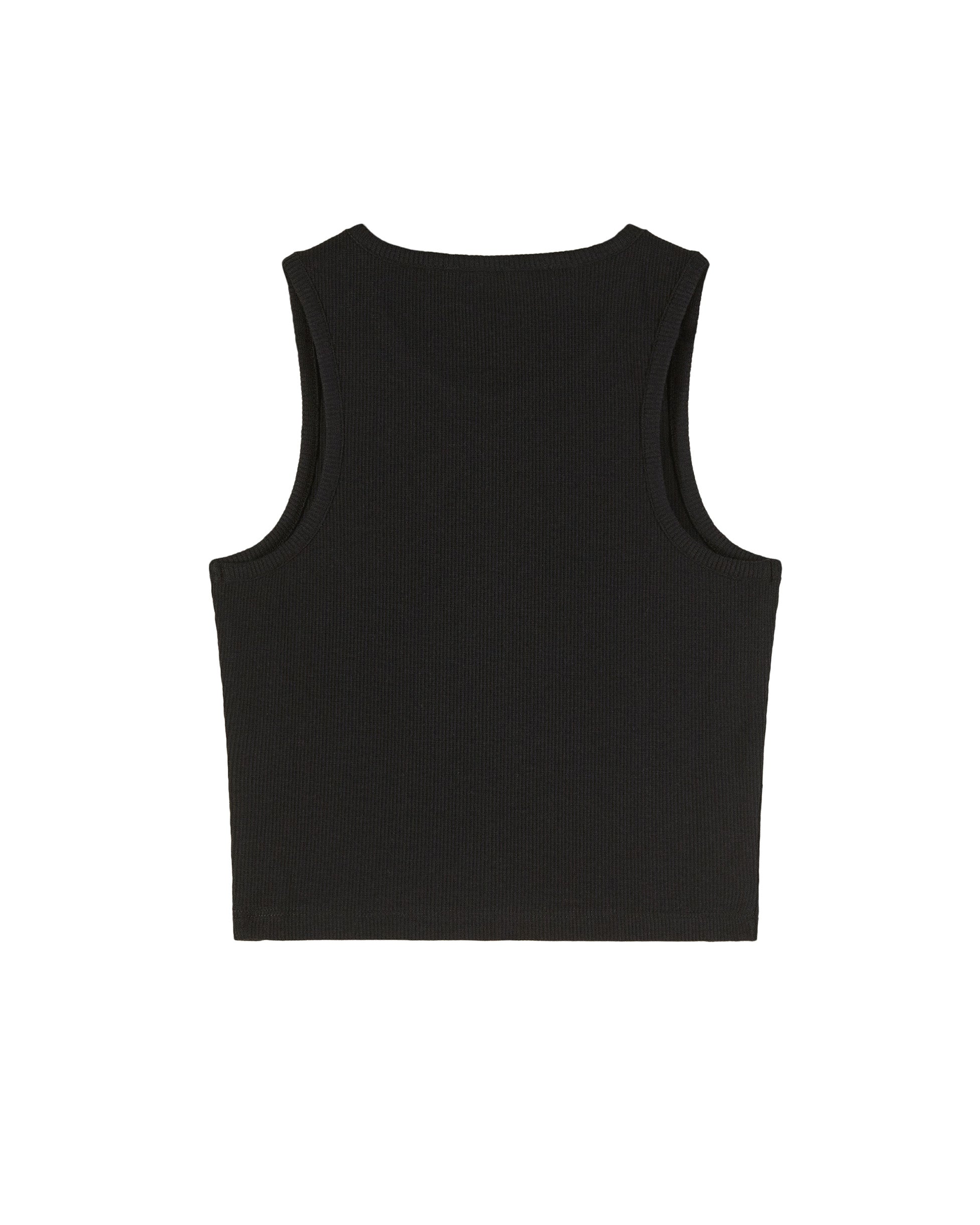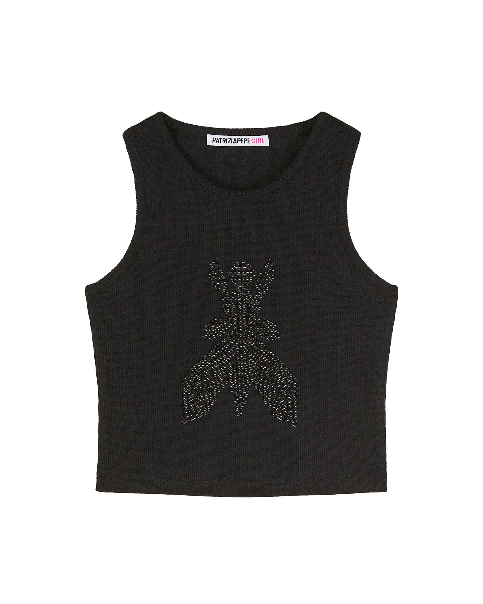 Patrizia Pepe Kids Top/Canotta Nera a Coste con Logo in Strass per Bambine