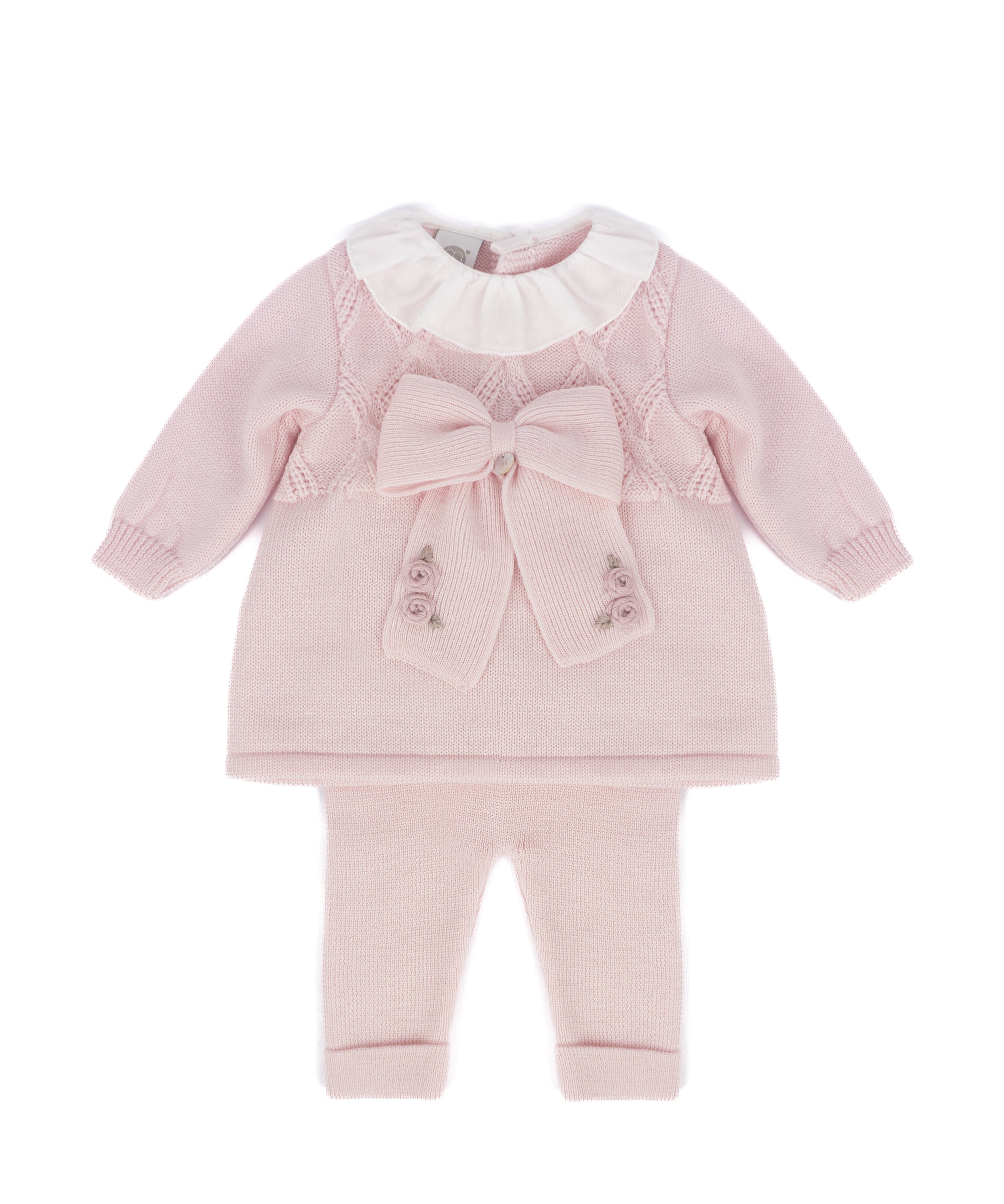 Barcellino Kids Completo Camicia (BODY) Rosa e Gonna con Intagli e Fiocco Bianco per Neonate