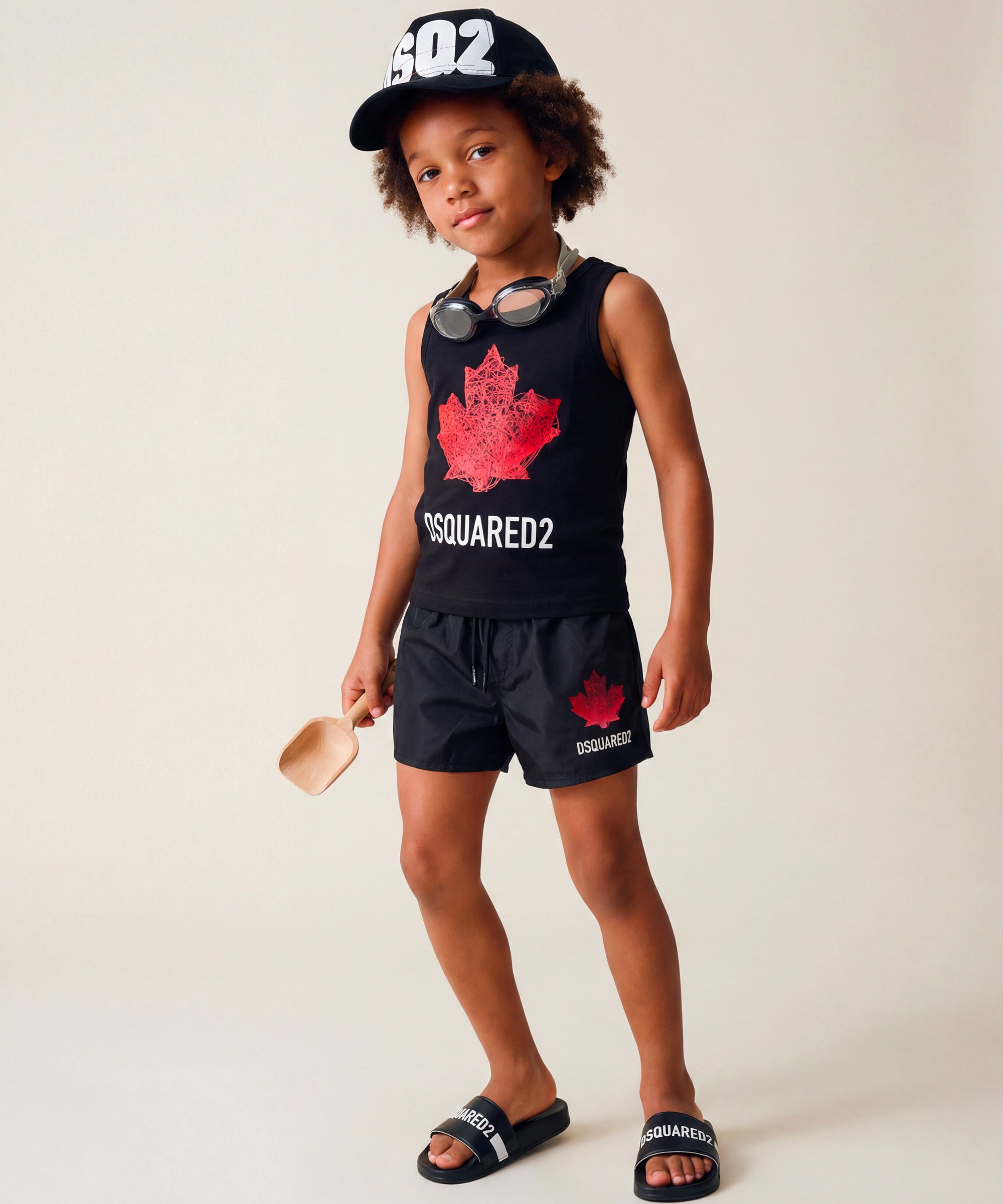 Dsquared2 Kids Costume Nero con Stampa Logo per Bambini