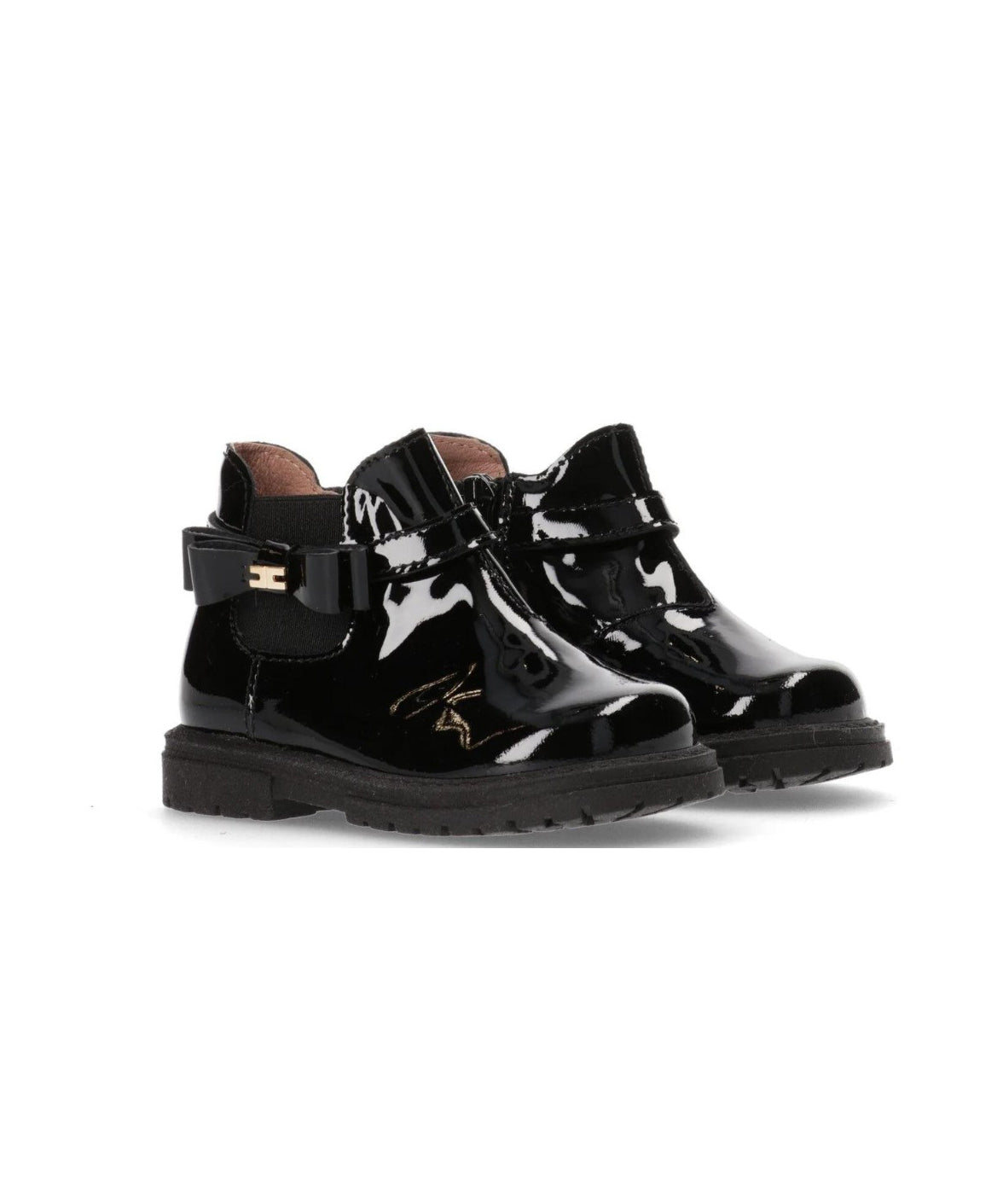 Elisabetta Franchi La mia Bambina Stivaletto Nero Lucido con Dettaglio Logo e Fiocco per Bambine