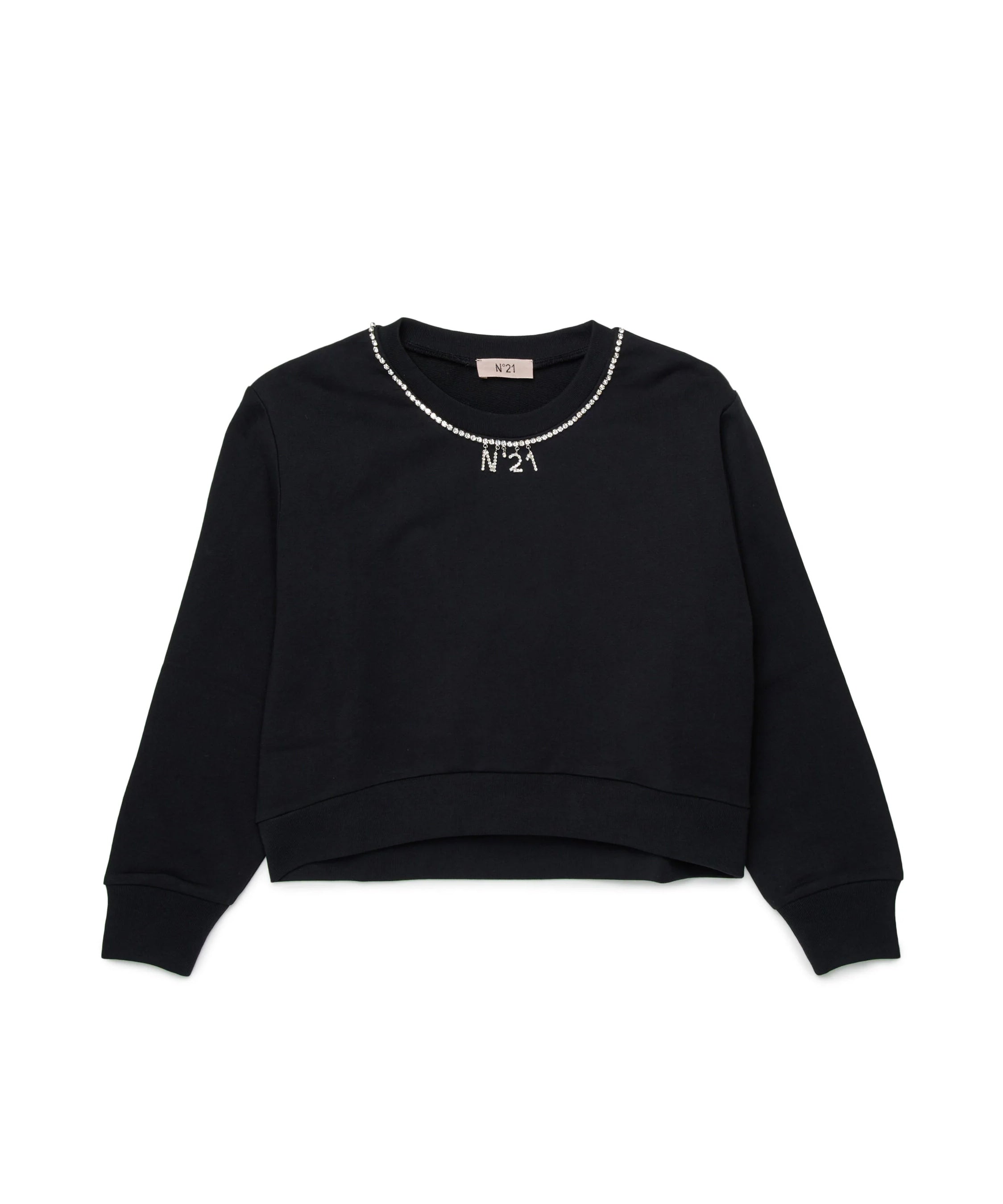 Diesel Kids Felpone Oversize Girocollo Nero con Oval D AR per Bambine