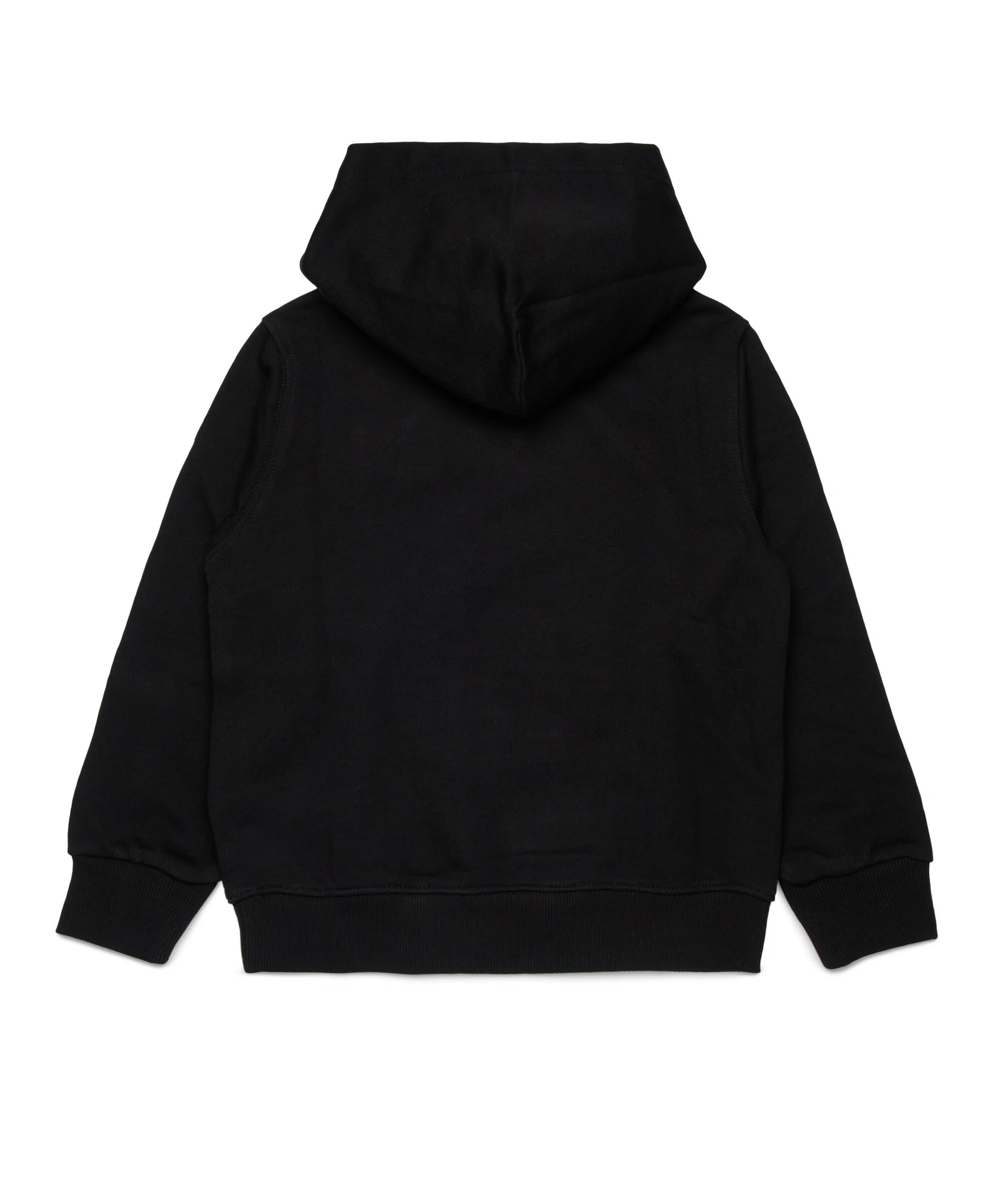Iceberg Kids Felpa Nera con Cappuccio con Patch logo e Stampa Retro per Bambini
