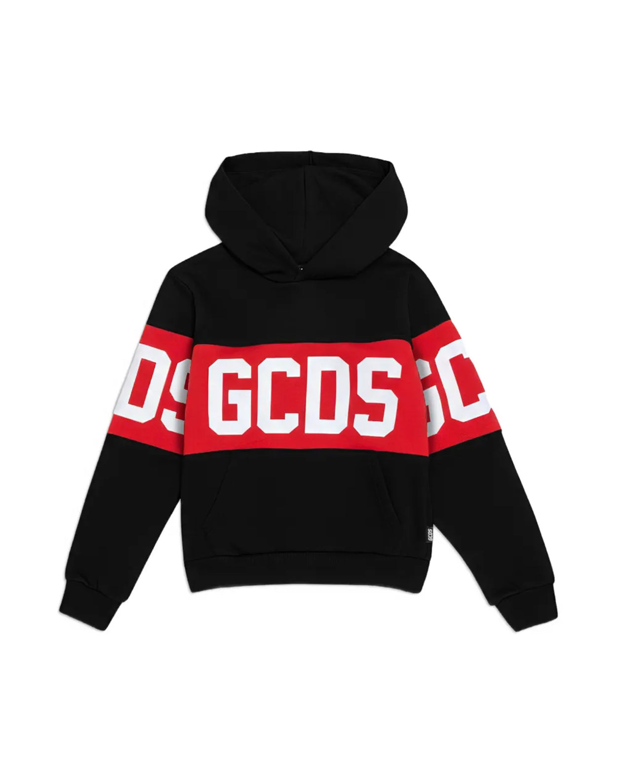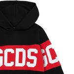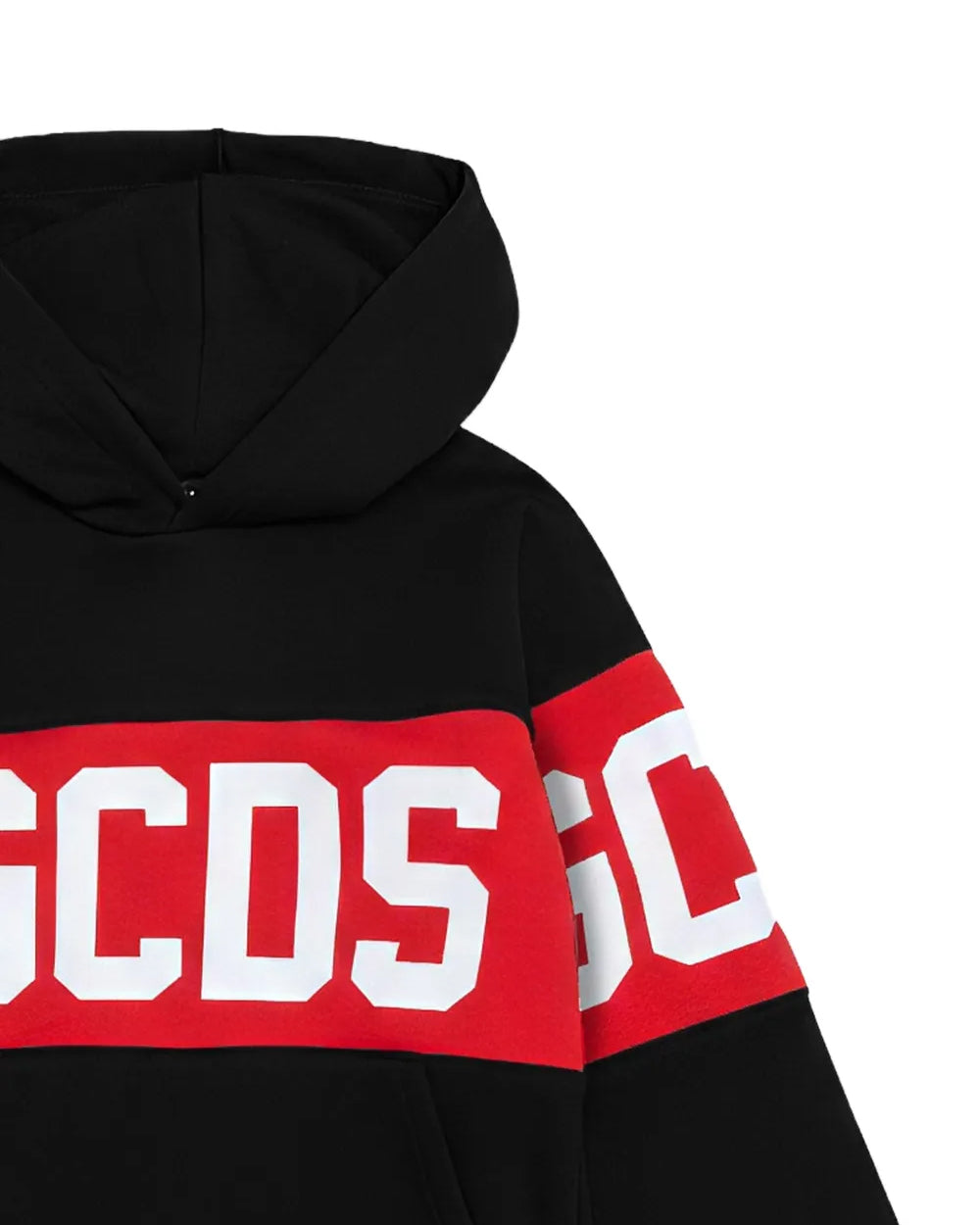 GCDS Kids Felpa con Cappuccio Nera con Banda Rossa Logata
