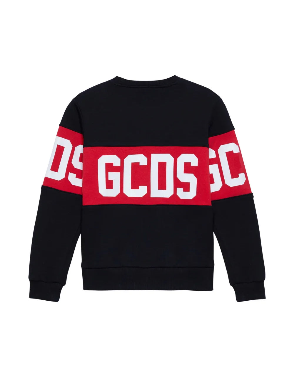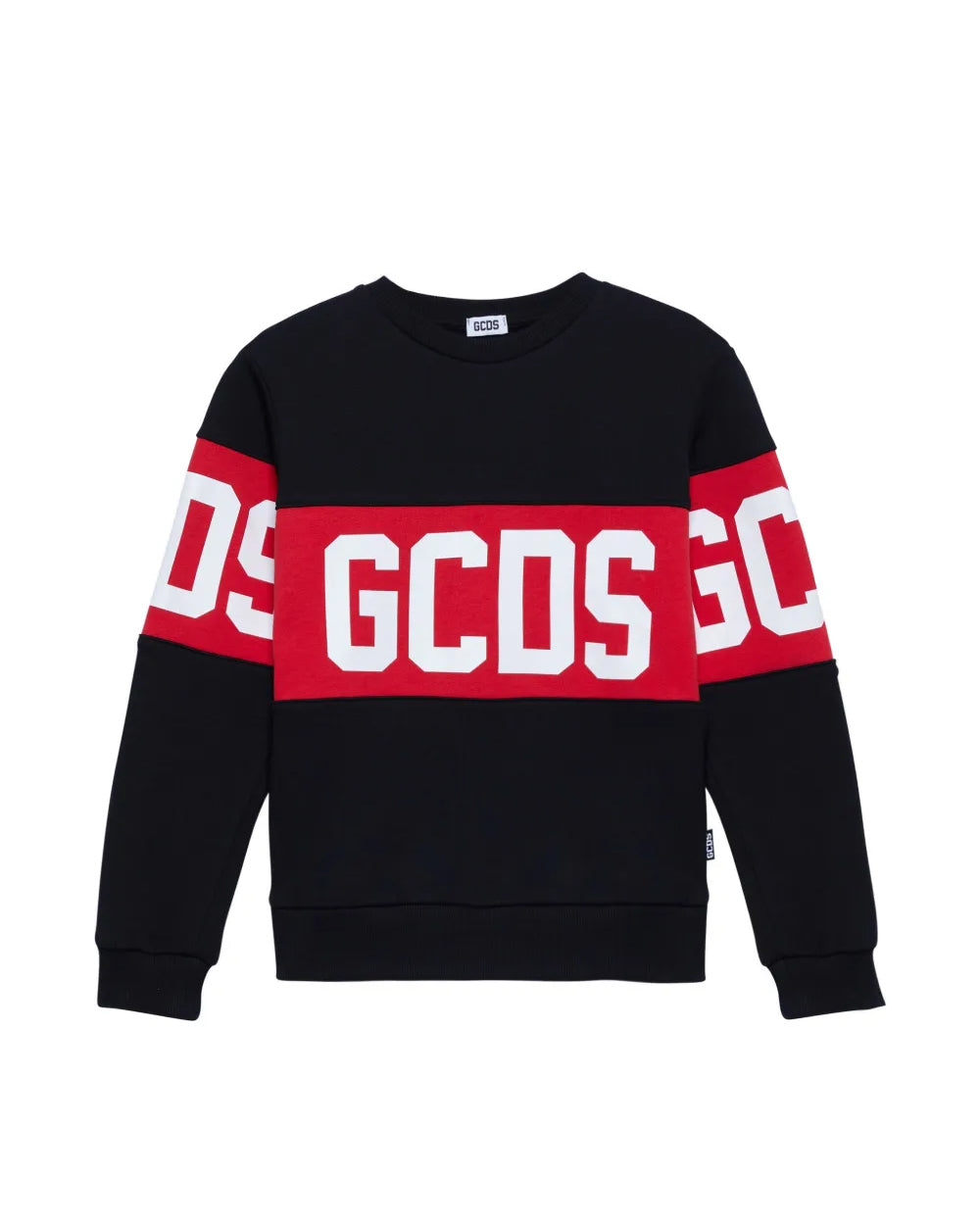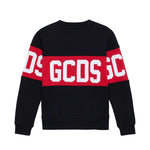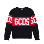GCDS Kids Felpa Girocollo Nera con Banda Rossa Logata
