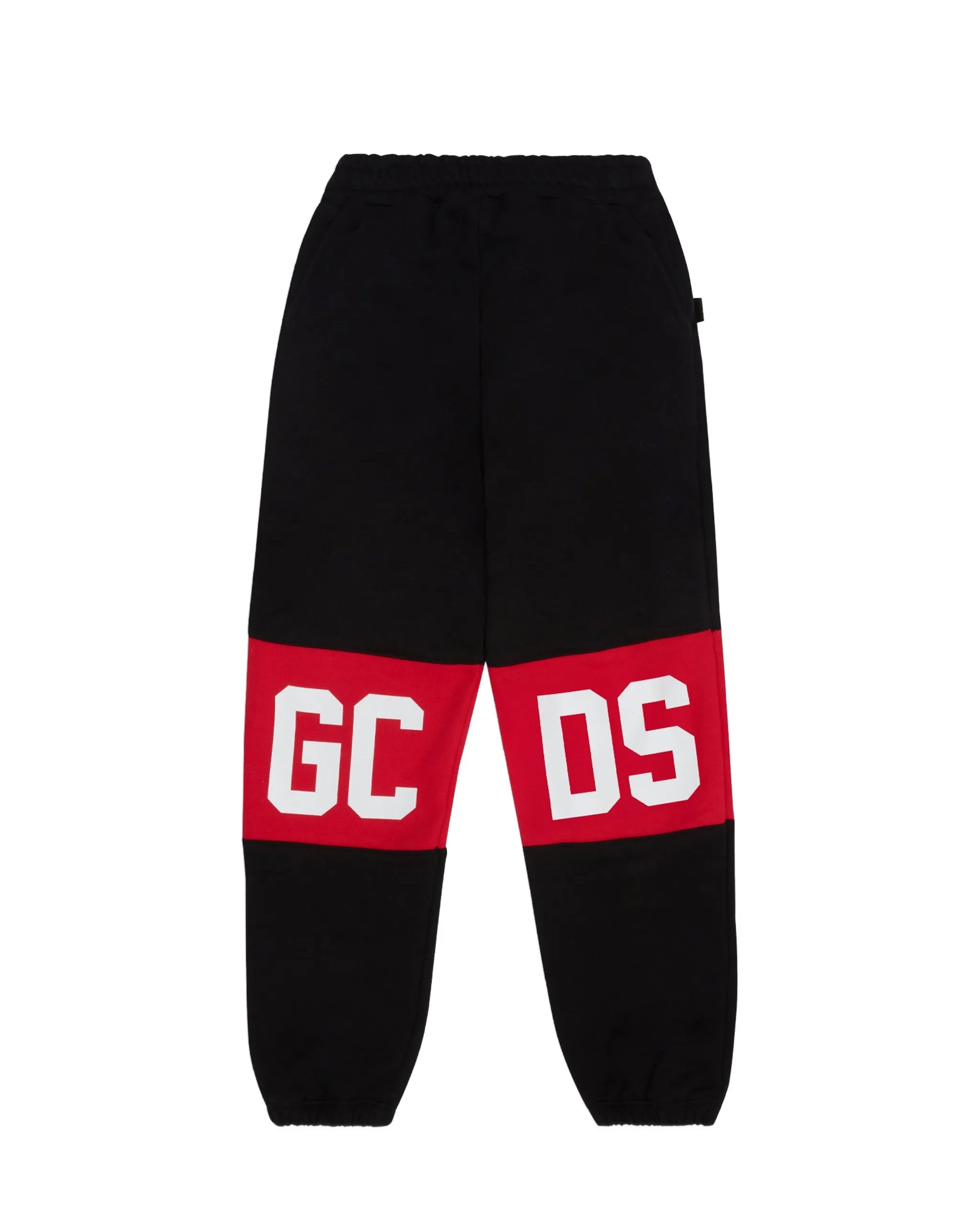 GCDS Kids Pantalone Tuta Nero con Banda Rossa Logata