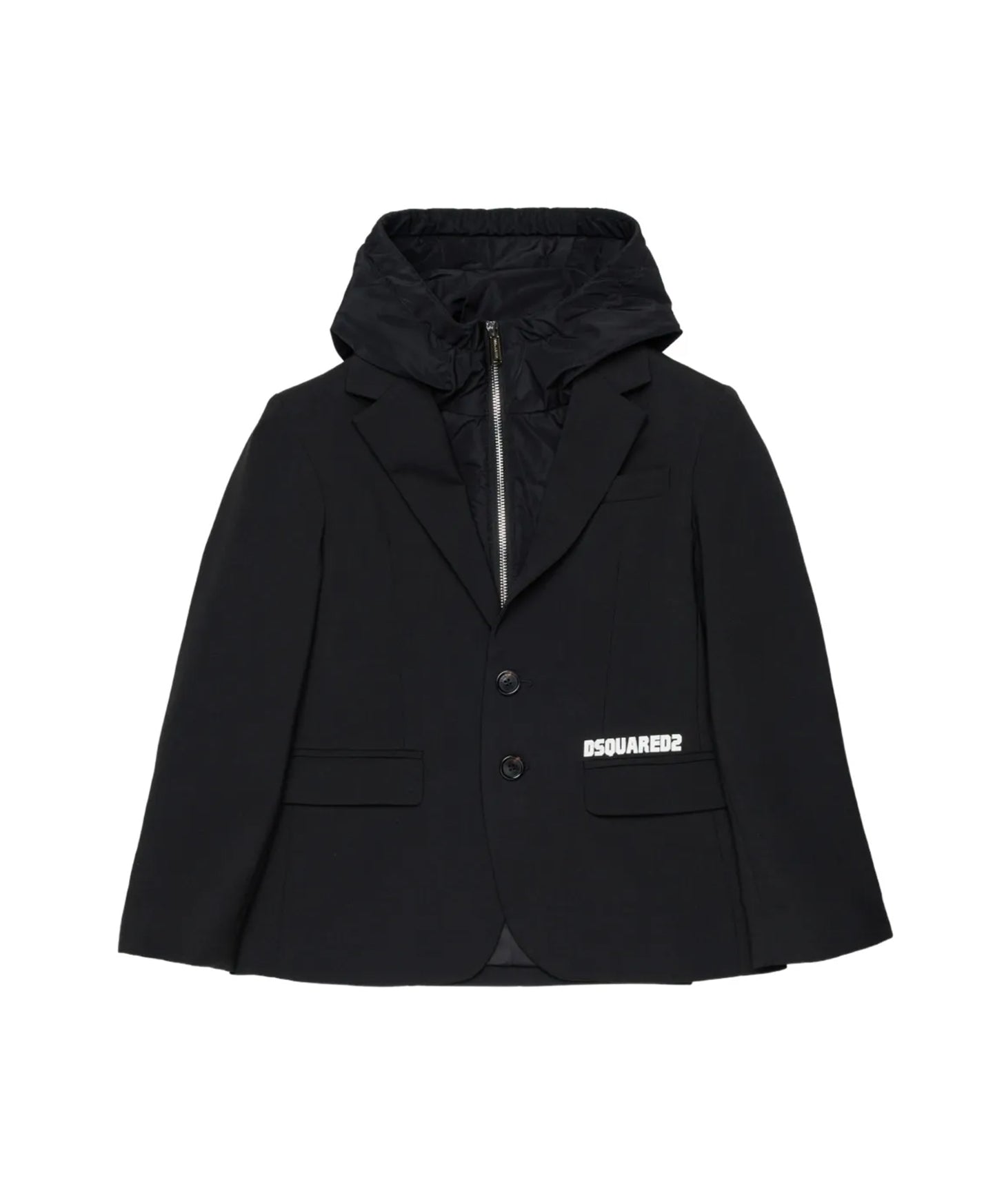 Pinko Kids Giacca Nera in Tessuto con Logo su Tasca Ricamato