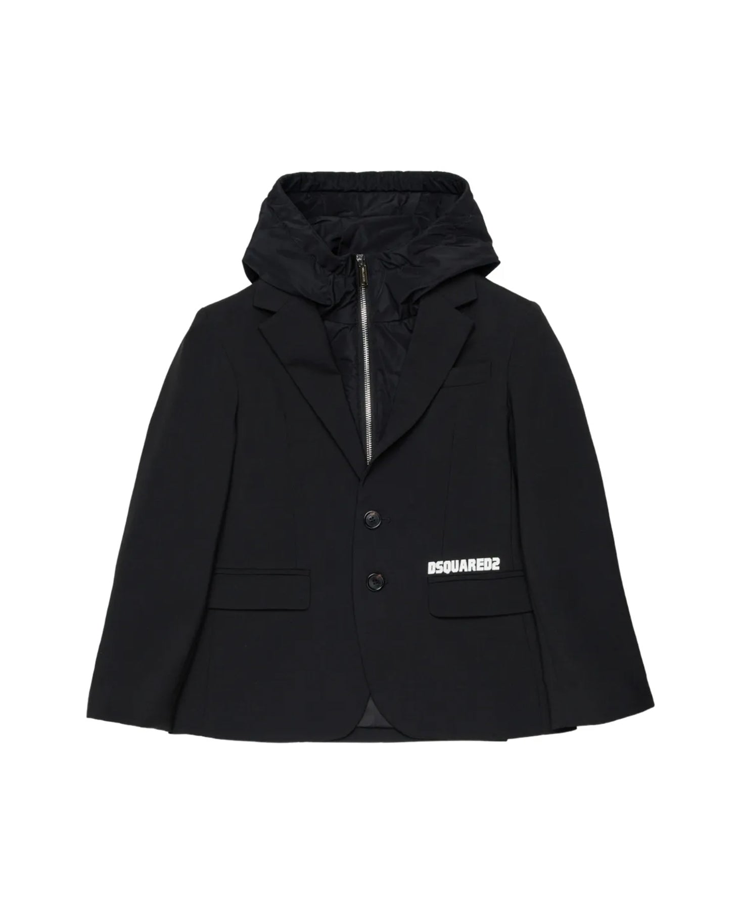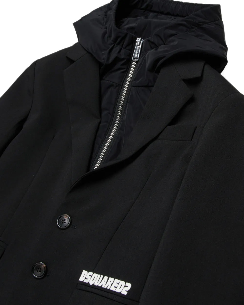 Dsquared2 Giacca da Completo Nera con Cappuccio Integato e Logo Stampato per Bambini