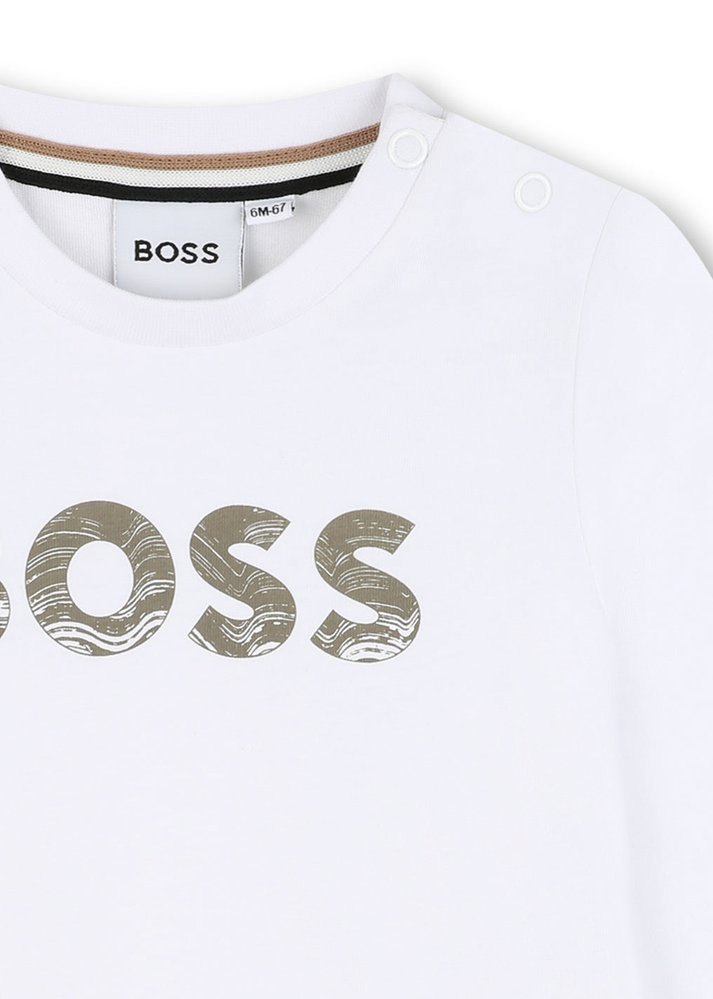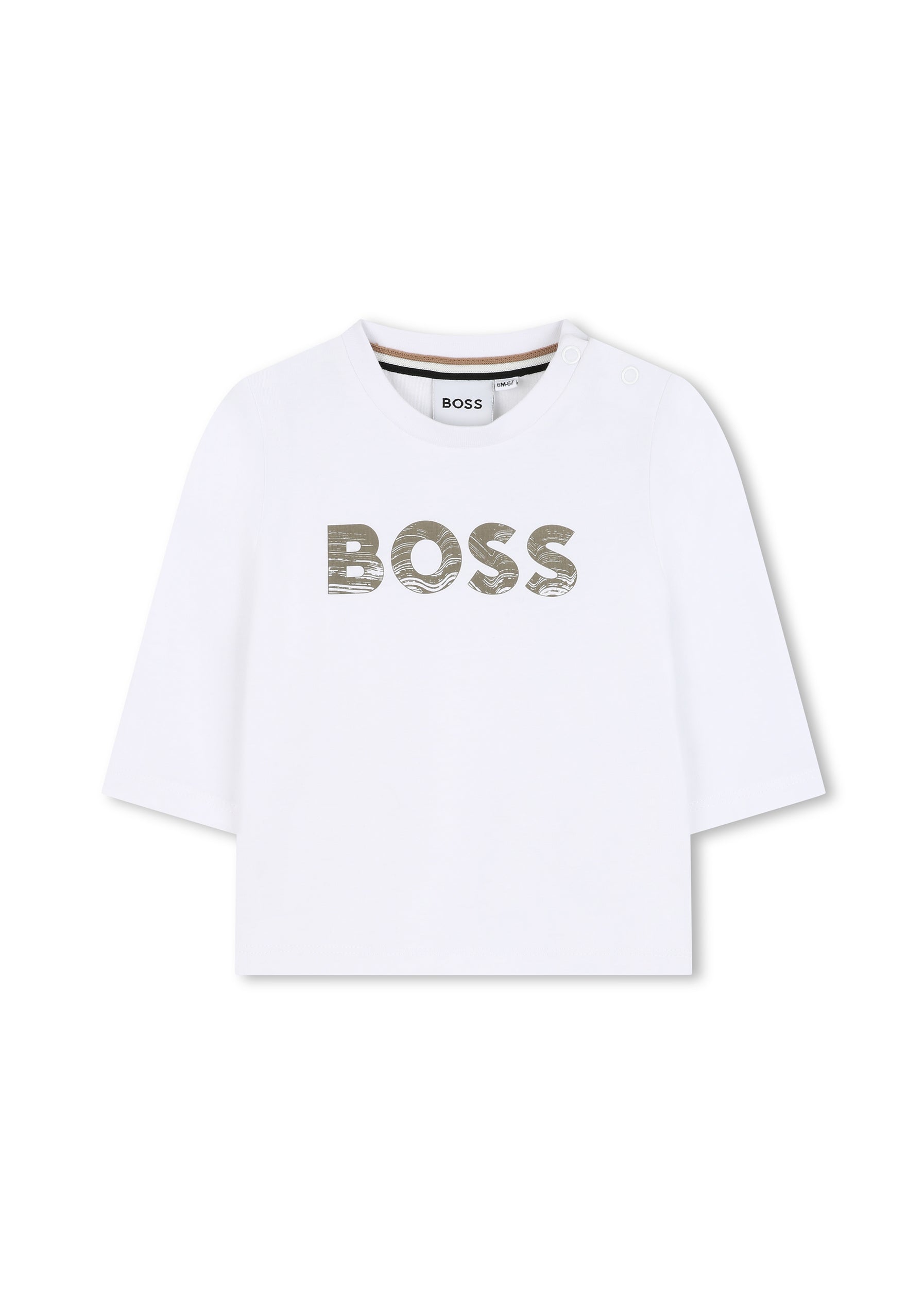 La T-shirt Bianca Hugo Boss a maniche lunghe per neonati è un capo essenziale e versatile, pensato per garantire comfort e stile in ogni occasione.