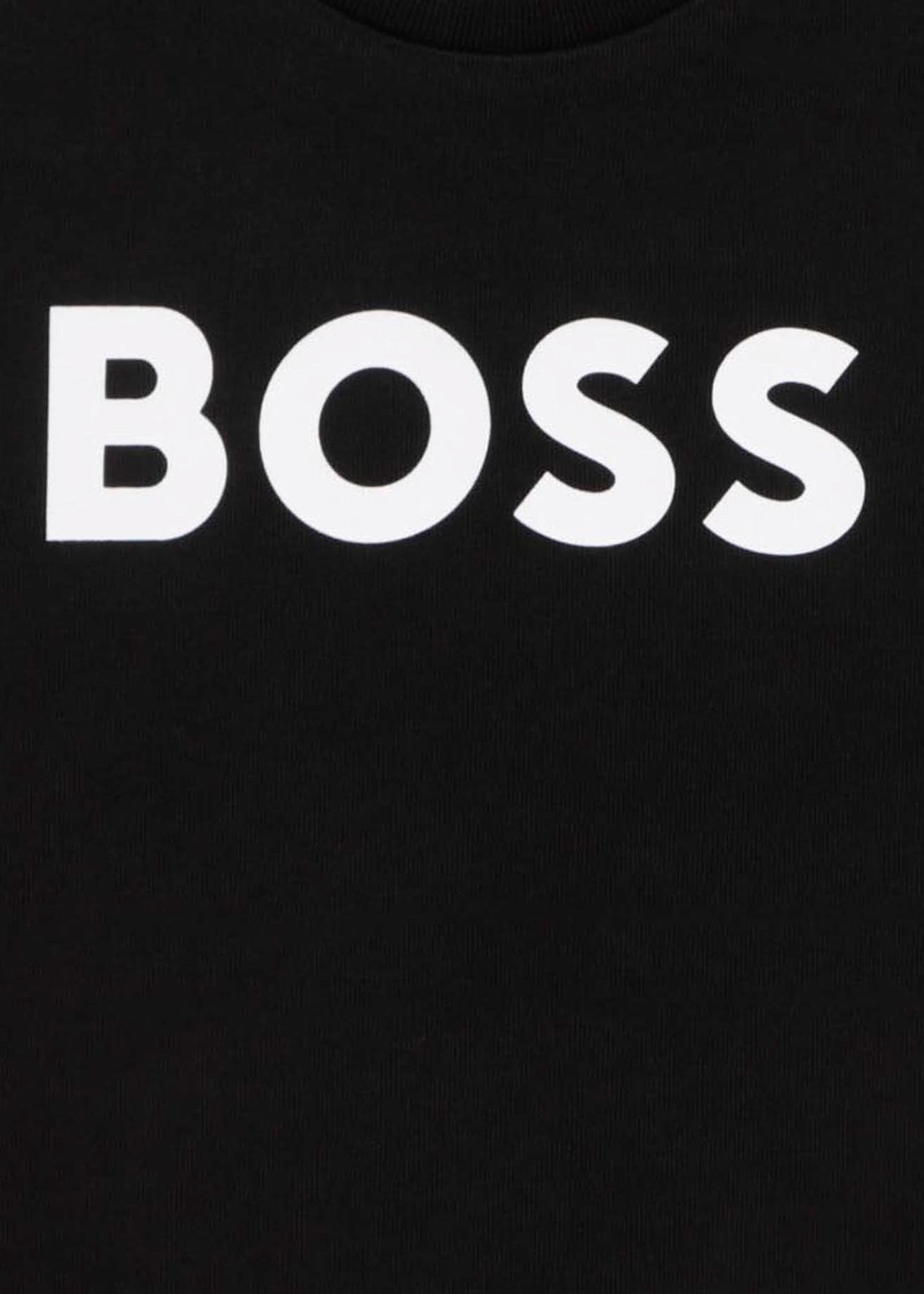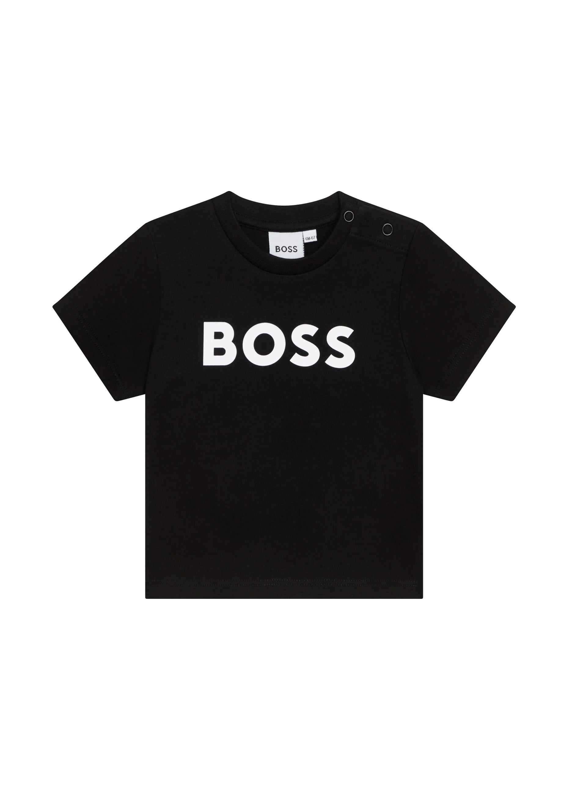 La T-shirt nera BOSS Kids per neonati ringiovanisce il classico modello basic con una grafica elegante: il logo BOSS a contrasto sul petto dona personalità e raffinatezza.