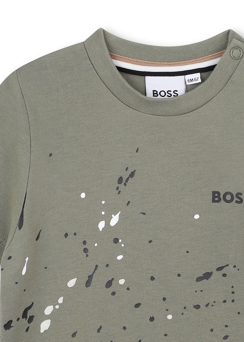 Boss Kids T-Shirt Verde con Stampa Logo per Neonati