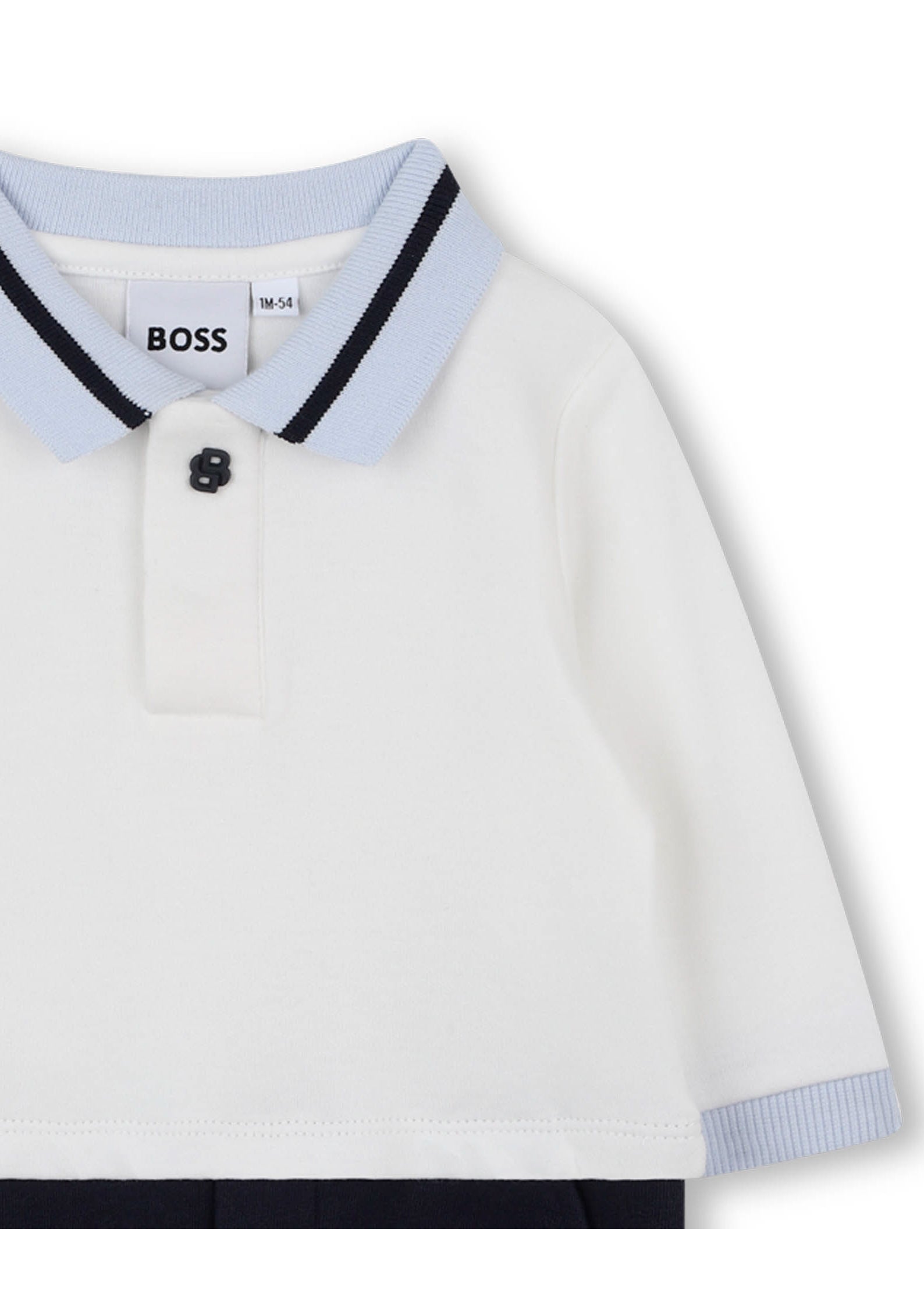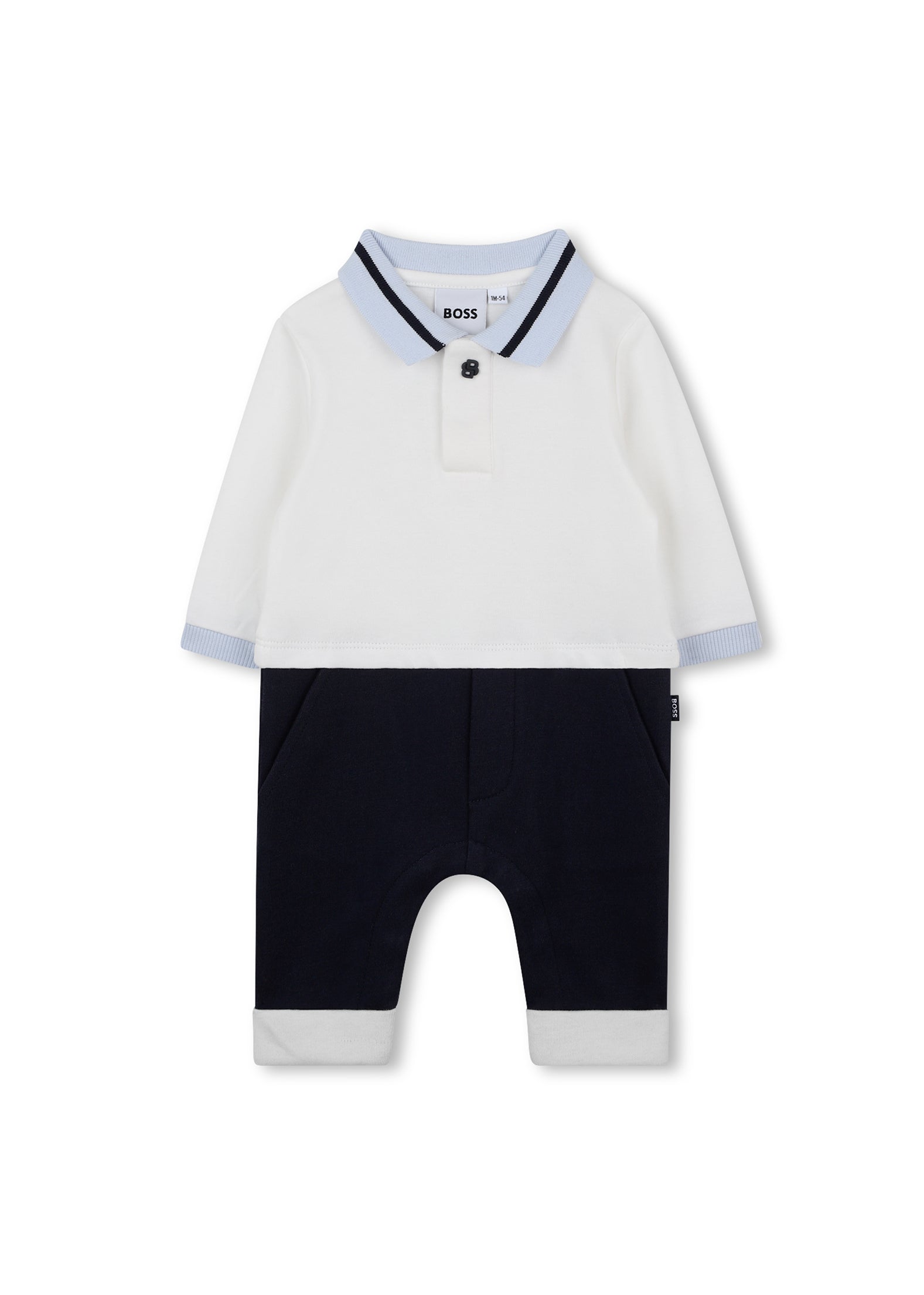 La tutina pagliaccetto BOSS Kids in cotone biologico 100% è pensata per offrire comfort e stile fin dai primi mesi.