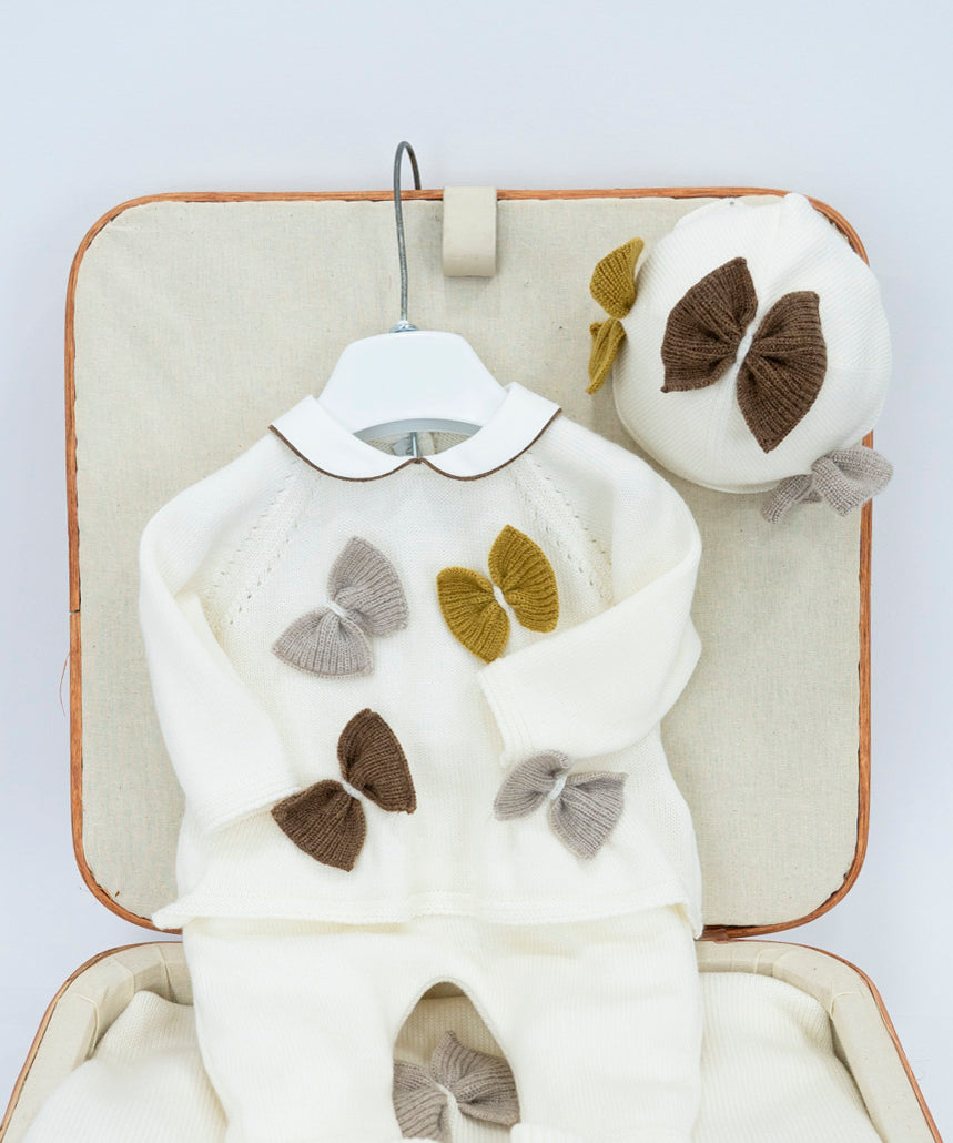 Le Coconne Corredino Bianco con Completo con Fiocchi per Neonate