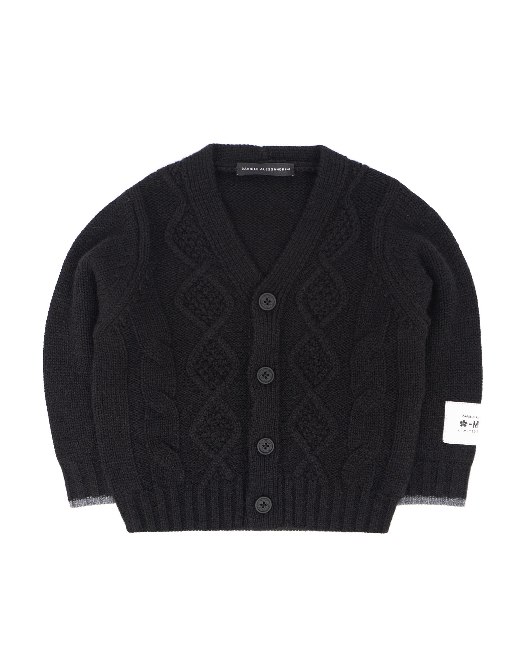 Alessandrini Kids Cardigan Nero con Etichetta Logo a Contrasto per Neo - Florence Kids