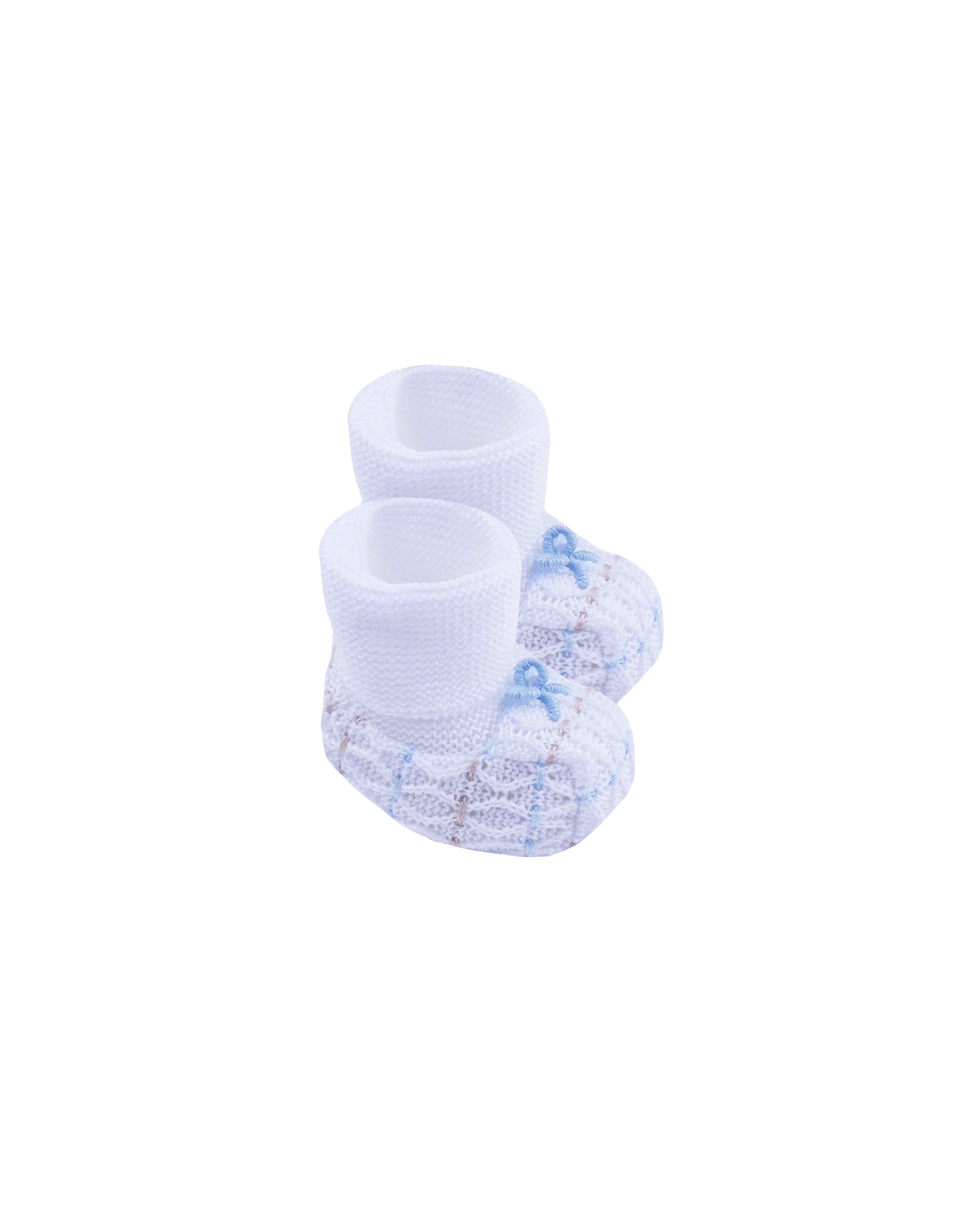 Marlù Scarpine Bianco Con Dettagli Azzurro/Noce e Applicazione Fiocco per Neonate