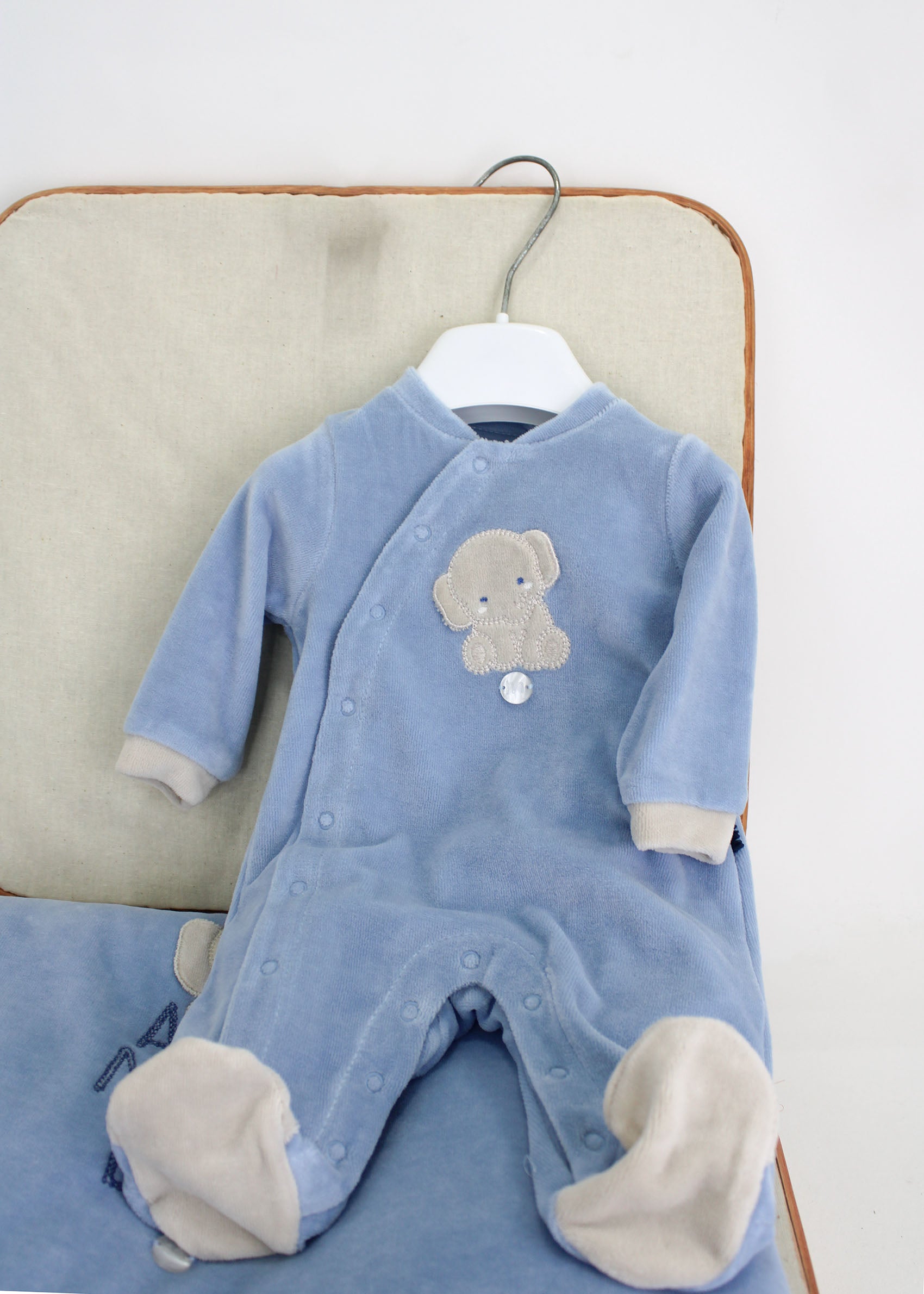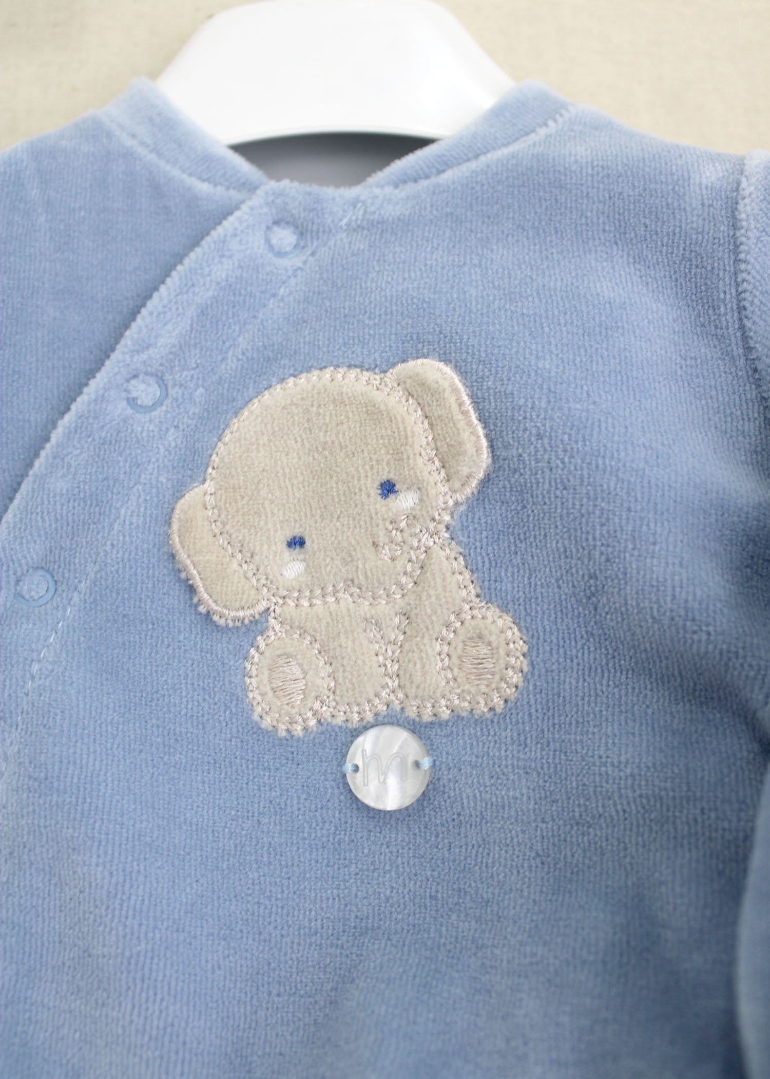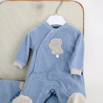 Minibanda Tutina Celeste/Beige con Ricamo per Neonati