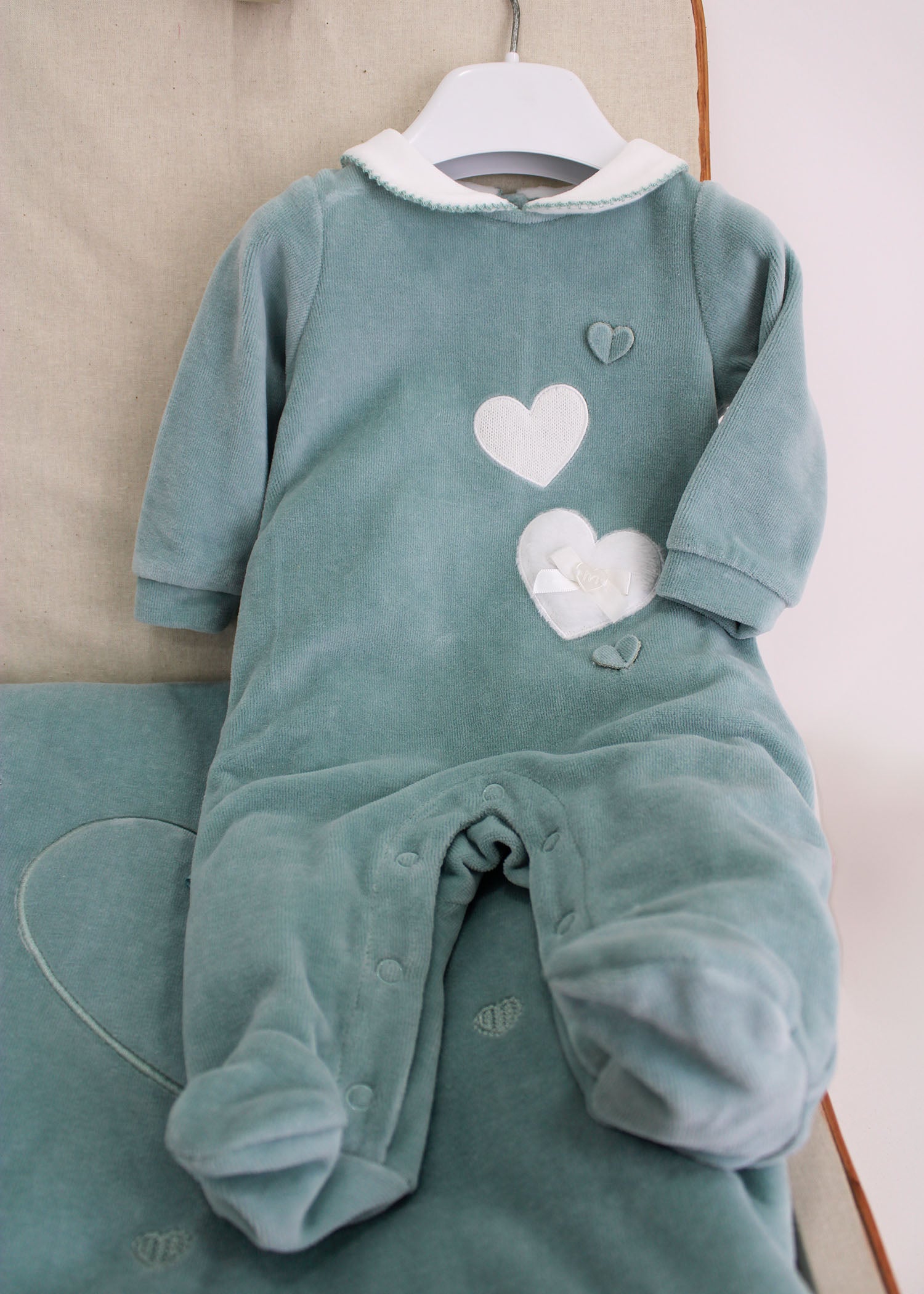 Minibanda Tutina Verde con Ricamo Cuori per Neonate - Florence Kids
