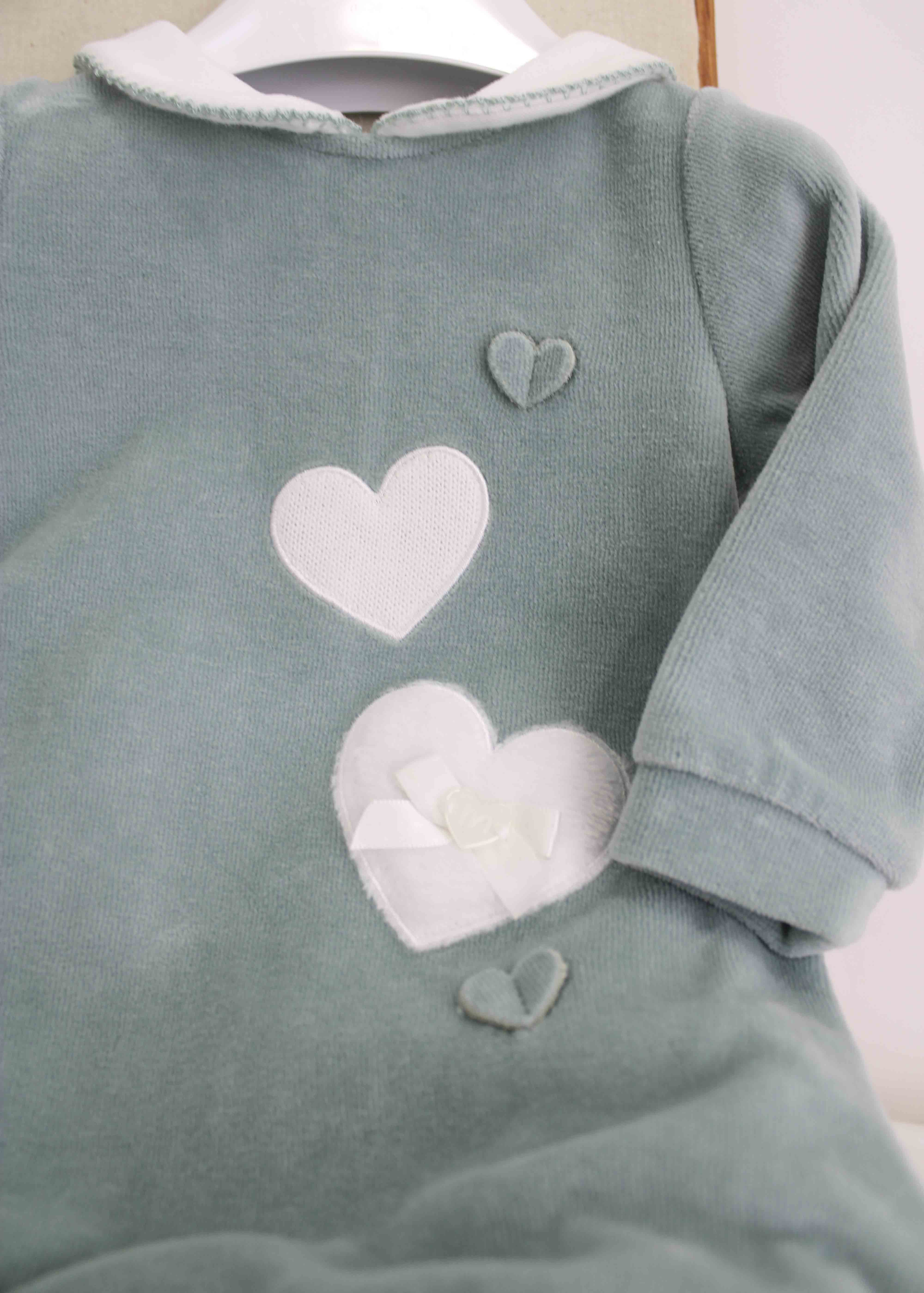 Minibanda Tutina Verde con Ricamo Cuori per Neonate